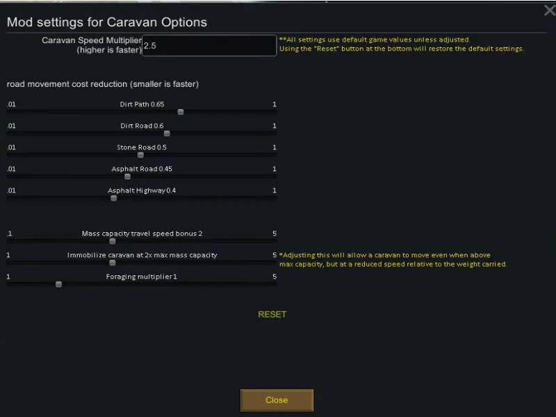 Lastly, if you just feel that caravan movement rates are too slow (or too fast), you can adjust a global multiplier to change caravan movement speeds.
