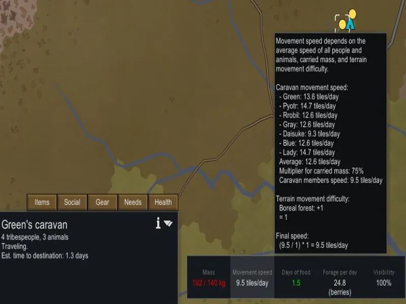 All pawn travel speeds, capacity limits, and game behavior is left intact - the mod only adds multipliers to existing calculations, which means this mod should be compatible with any mod that adjusts or adds biome speeds, pawn capacities, or new or modified road types.