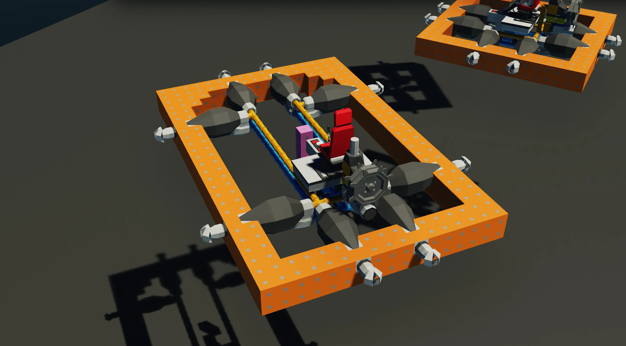 It's main power source is the inverted grip tank wheel and the constantly spinning velocity pivot, where the pivot provides grip to the tank wheel, but since it's negative it will spin and accelerate uncontrollably.