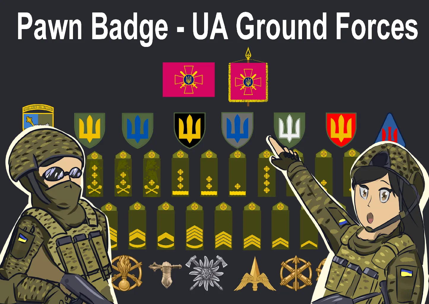 I was looking and waiting for a mod on Steam that would add Ukrainian military insignia to the Pawn Badge mod, but it never happened. So I decided to take matters into my own hands.
