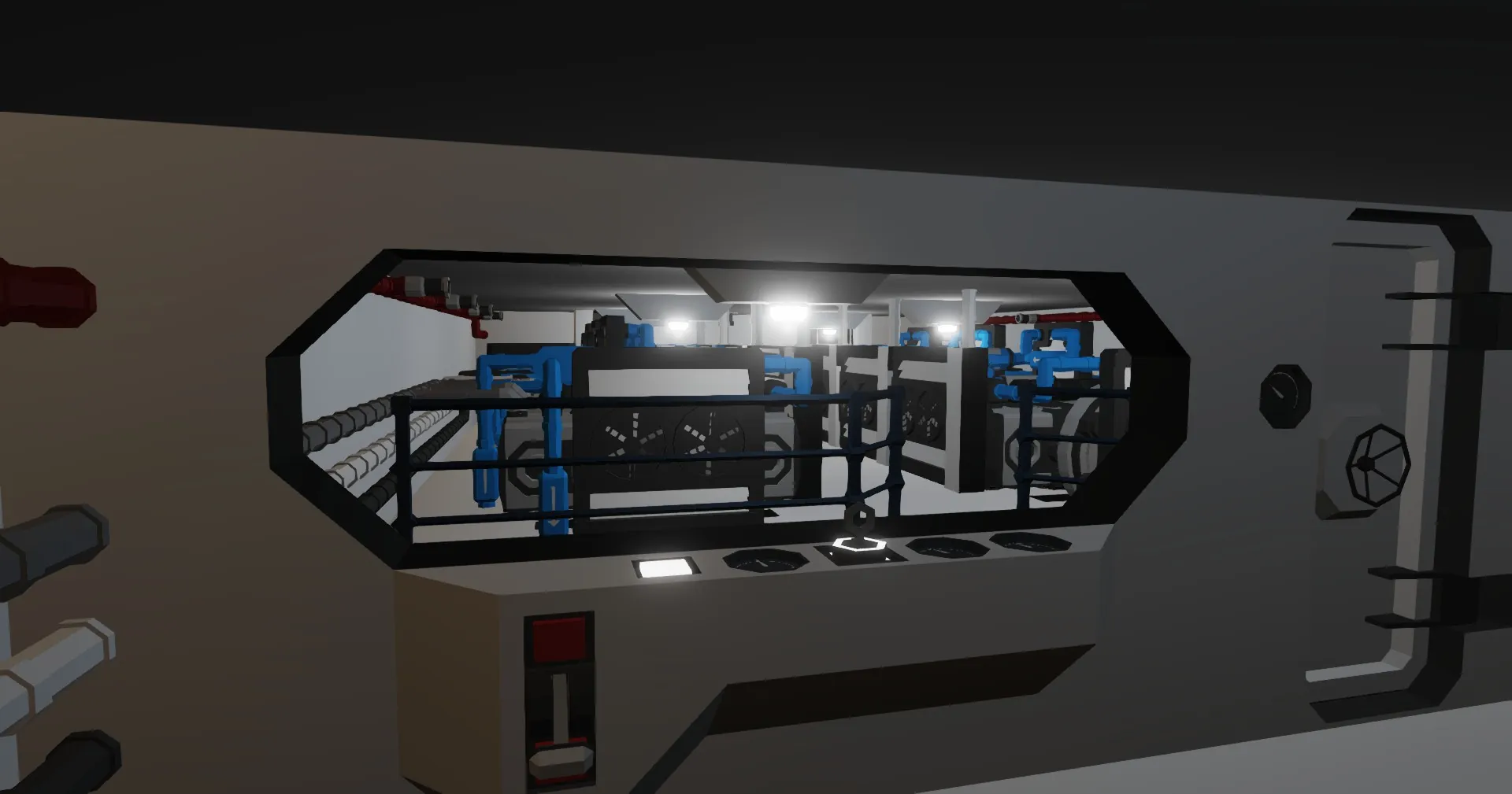 4. Start the engines with the two keys and enable the fuel valves on the port and starboard walls.