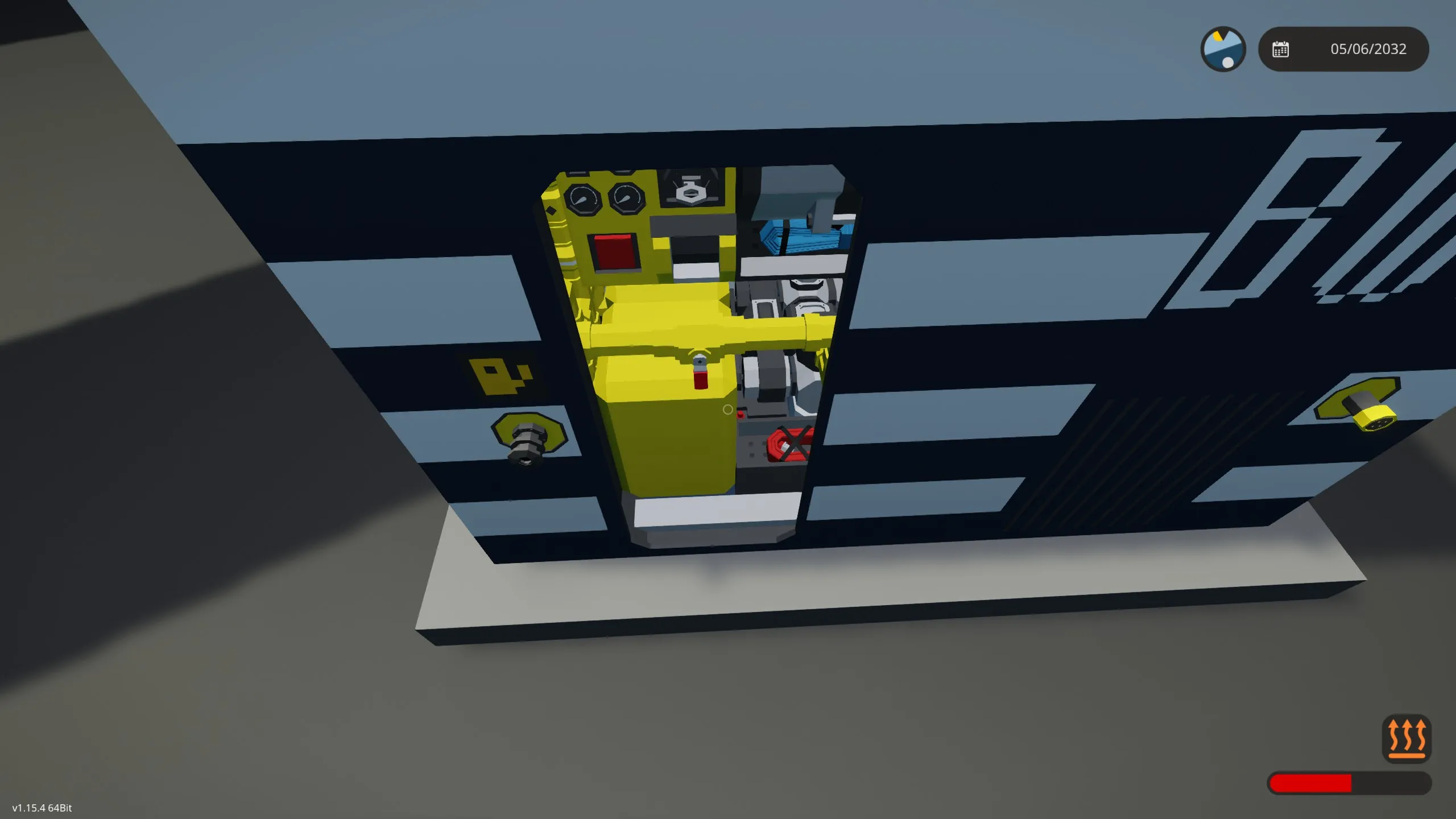 The instrument panel includes a low fuel warning light (the trigger value can be set via property) and displays essential data such as fuel level, engine RPS, engine temperature, and current power output.