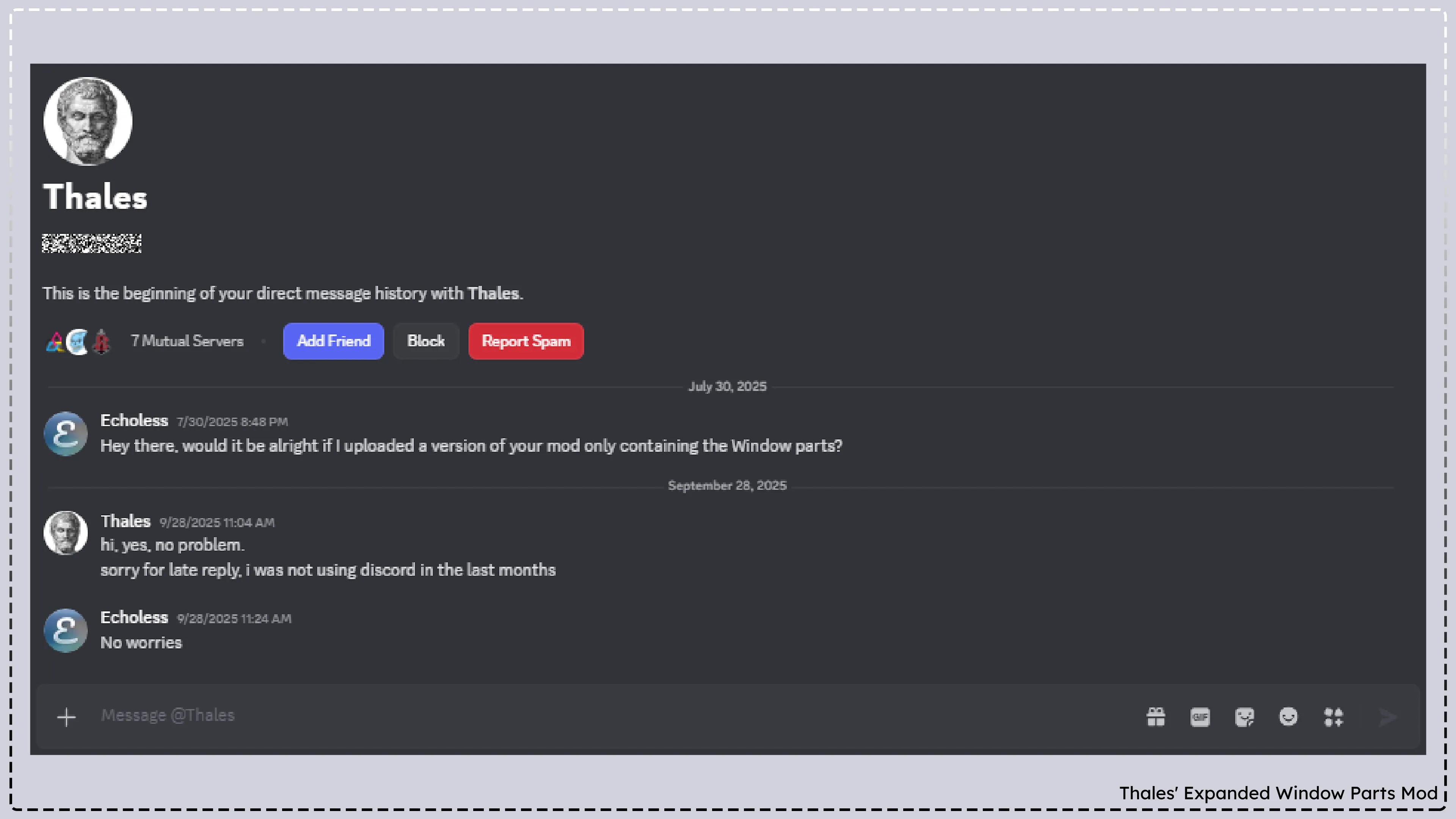This mod solely contains of parts created by Thales, and I, Echoless, have explicitly written permission to upload this version of it.