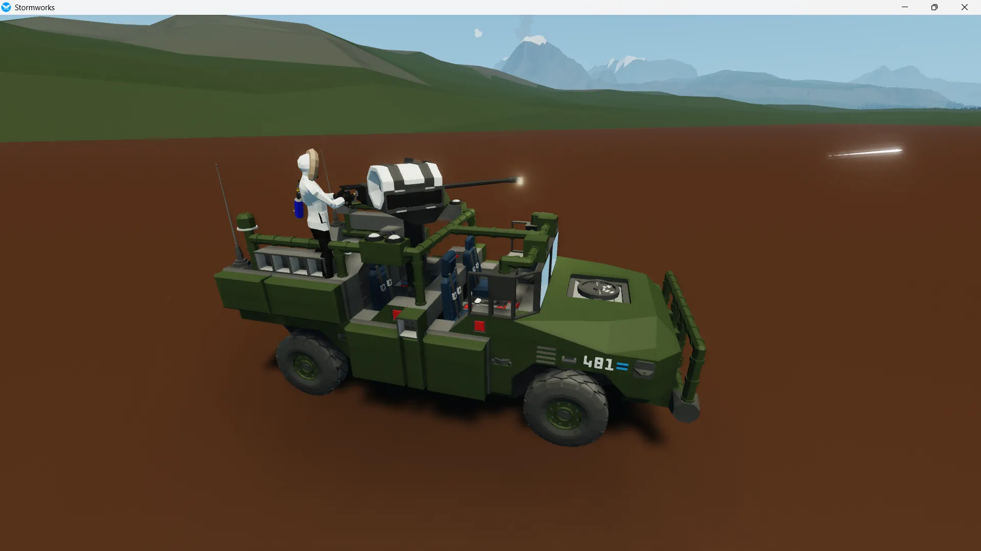 the raider 2 is the upgraded special ops variant of the ARC1000 patrol car and the original raider variant. it is built to the mk2 standard of the ARC1000 series and has most of the same features as well as improved front and side protection and an open top roll cage design as well as a manual light autocannon in place of the usual light machine gun turret. the raider 2 also features additional equipment slots to further customize the vehicles loadout. the raider 2 is meant for as the name suggests raiding behind enemy lines as well as being effective in long range desert patrols.