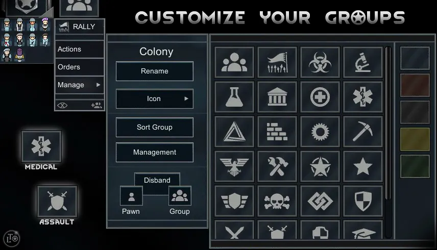 [b]Create groups[/b] - simply select some pawns, click the create group button - That's all.