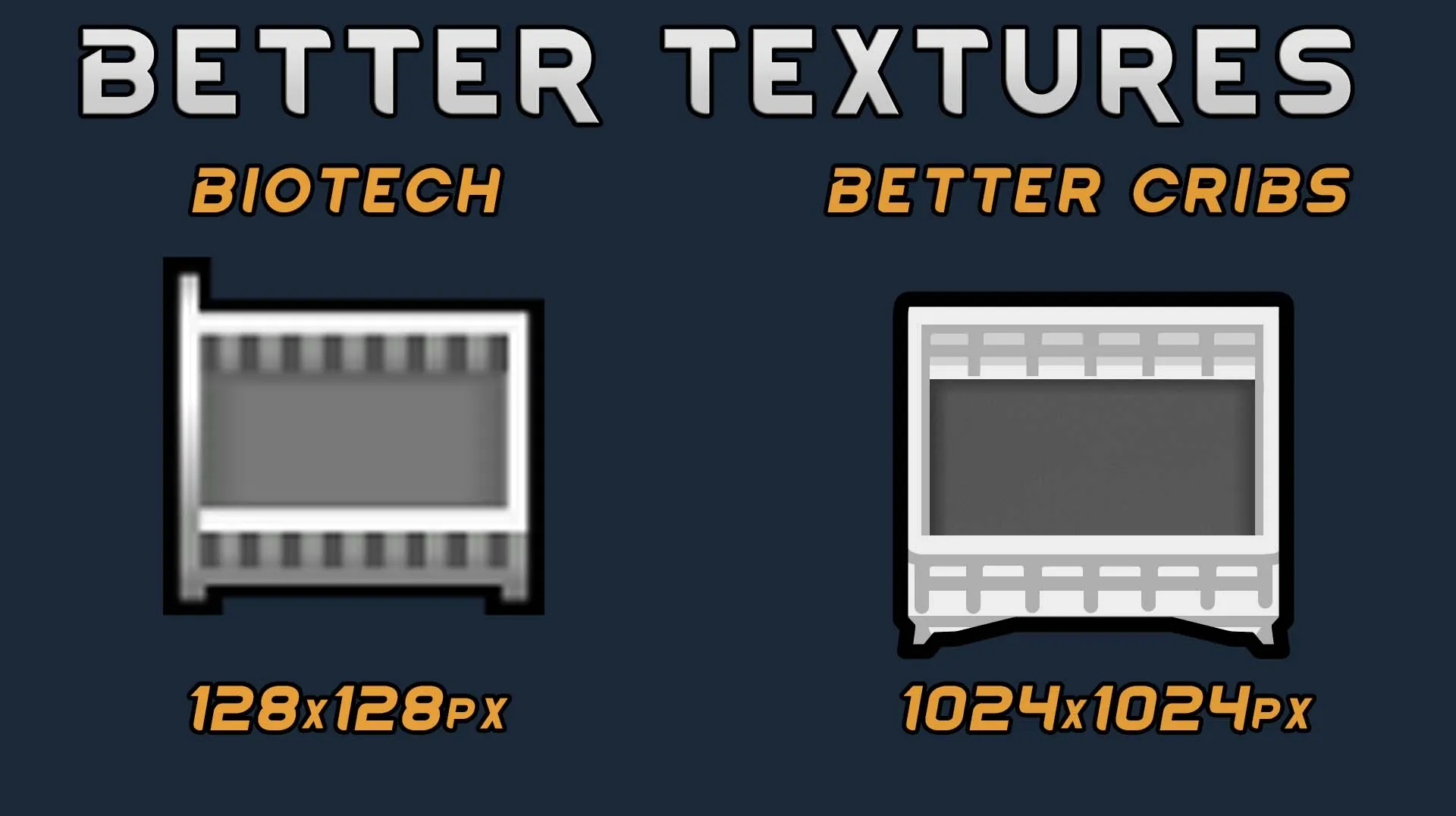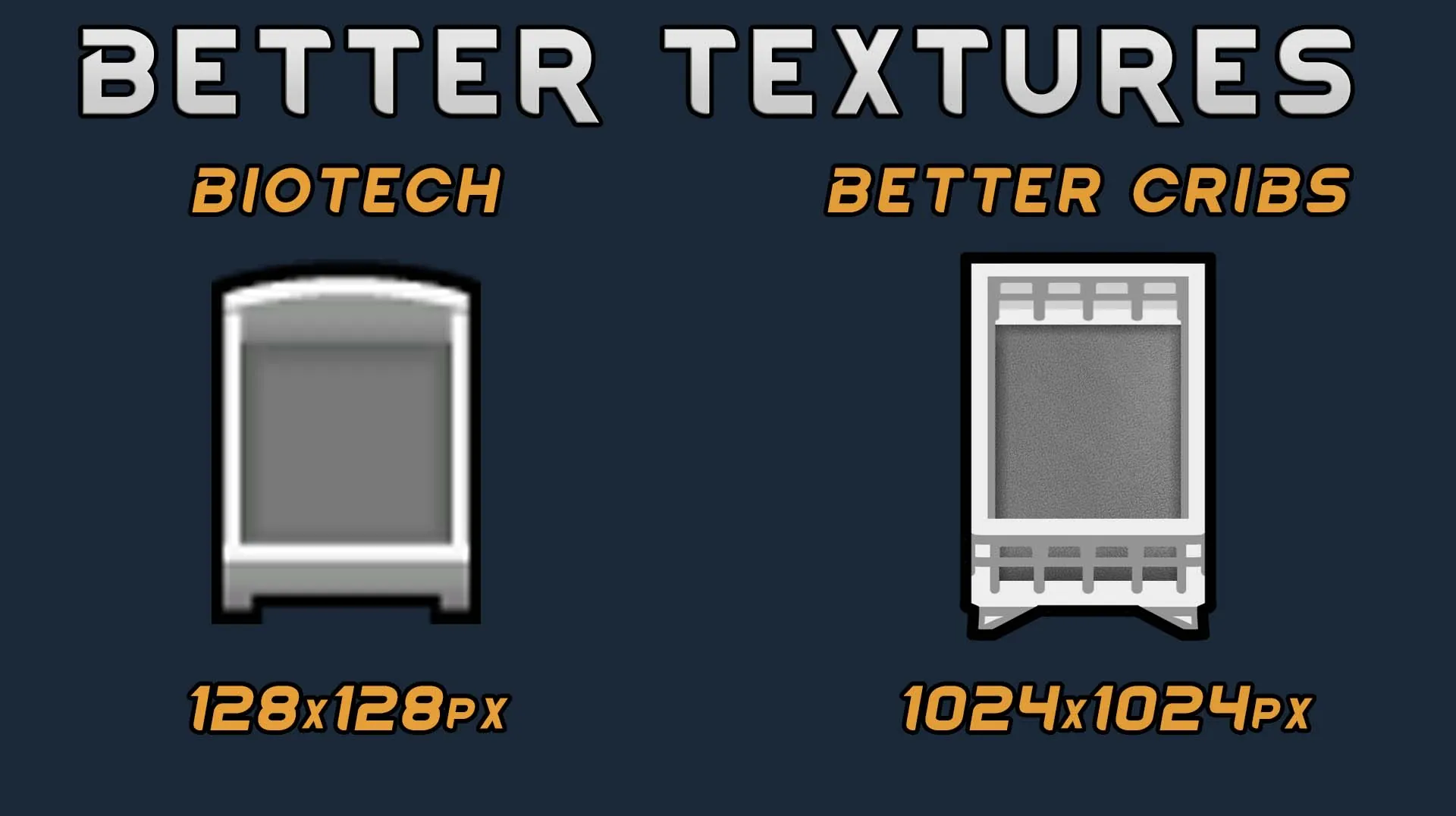 This mod seeks to introduce two new cribs with a higher level of detail and resolution than the one introduced by Biotech. They probably fit worse the vanilla style, but everyone has their own tastes.