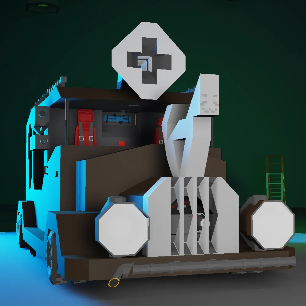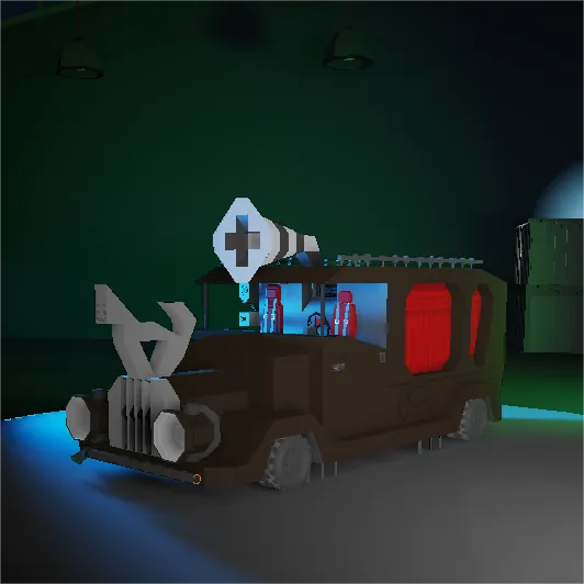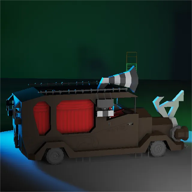 The mayor's hearse from the cartoon "The Nightmare before Christmas". MD28 - Made pixel art for curtains, a cat and a monster in the engine