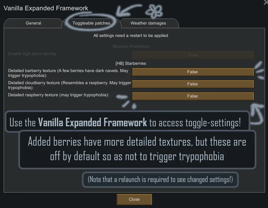 • Edits the descriptions of berry bushes and (if you have Ideology) berrymaker dryads