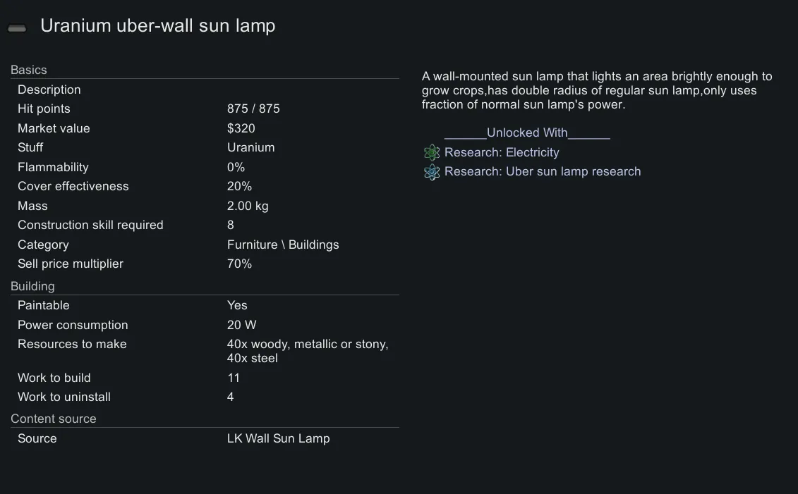 Adds Uber wall sun lamp locked behind LK sun lamp research found in LK sun lamp research tab