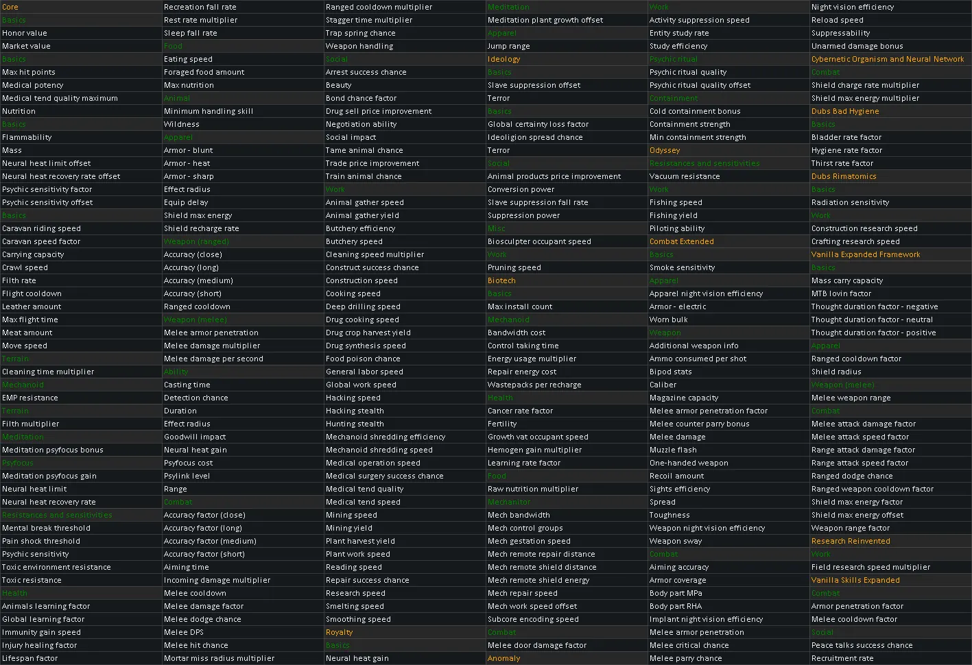 Stats are not hardcoded; every mod, which adds new stats, will be listed here. Any apparel, which has the stat in question, will gain or lose a score based on this setting.