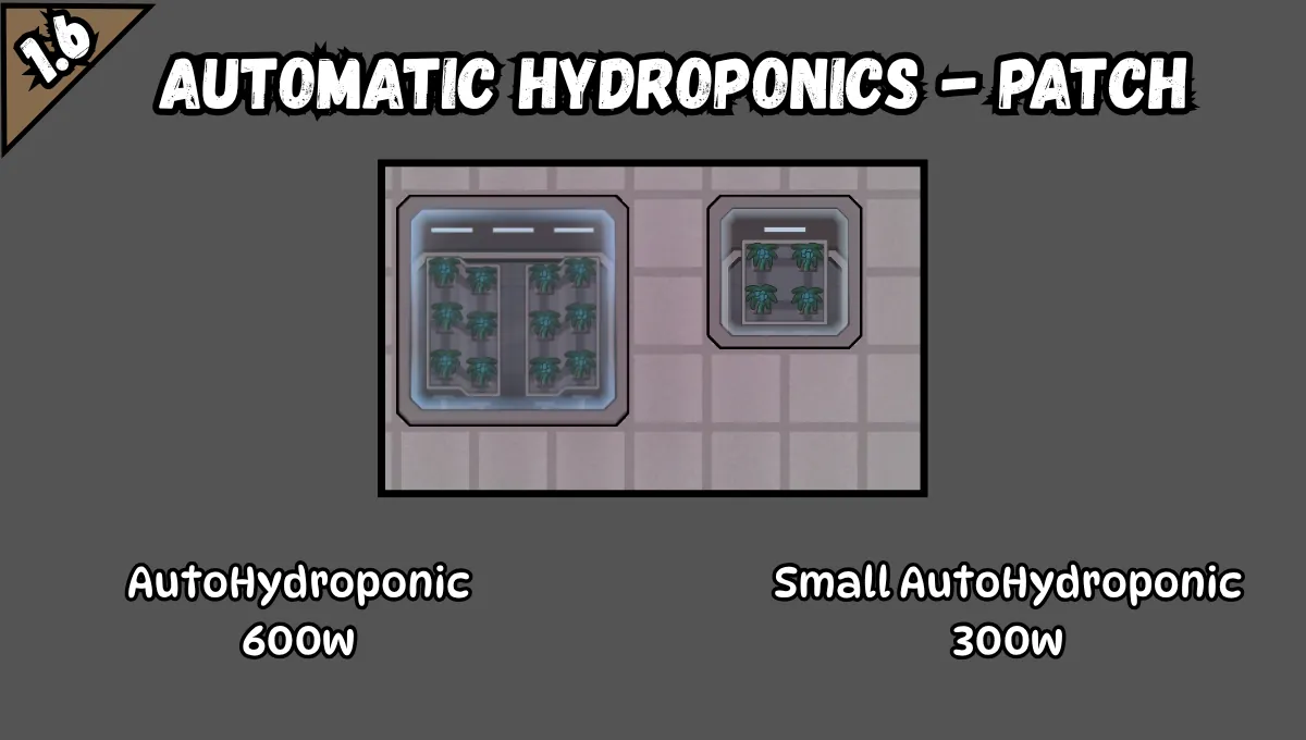 This patch changes: * AutoHydroponic: Power → 600W * SmallAutoHydroponic: Power → 300W * [NEW] Added [b]Minified[/b] and [b]Mass[/b]