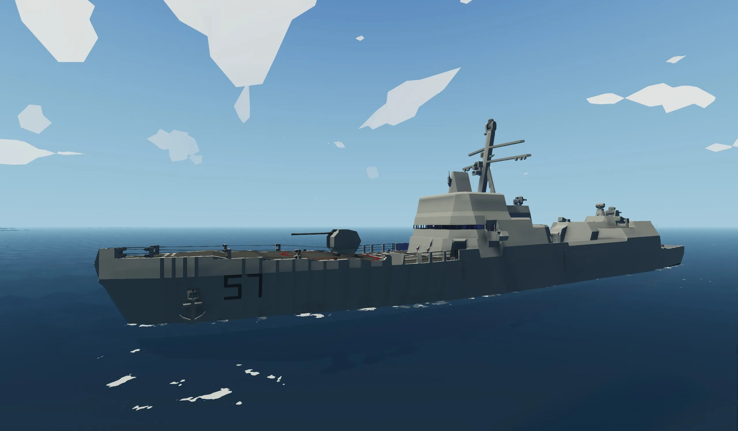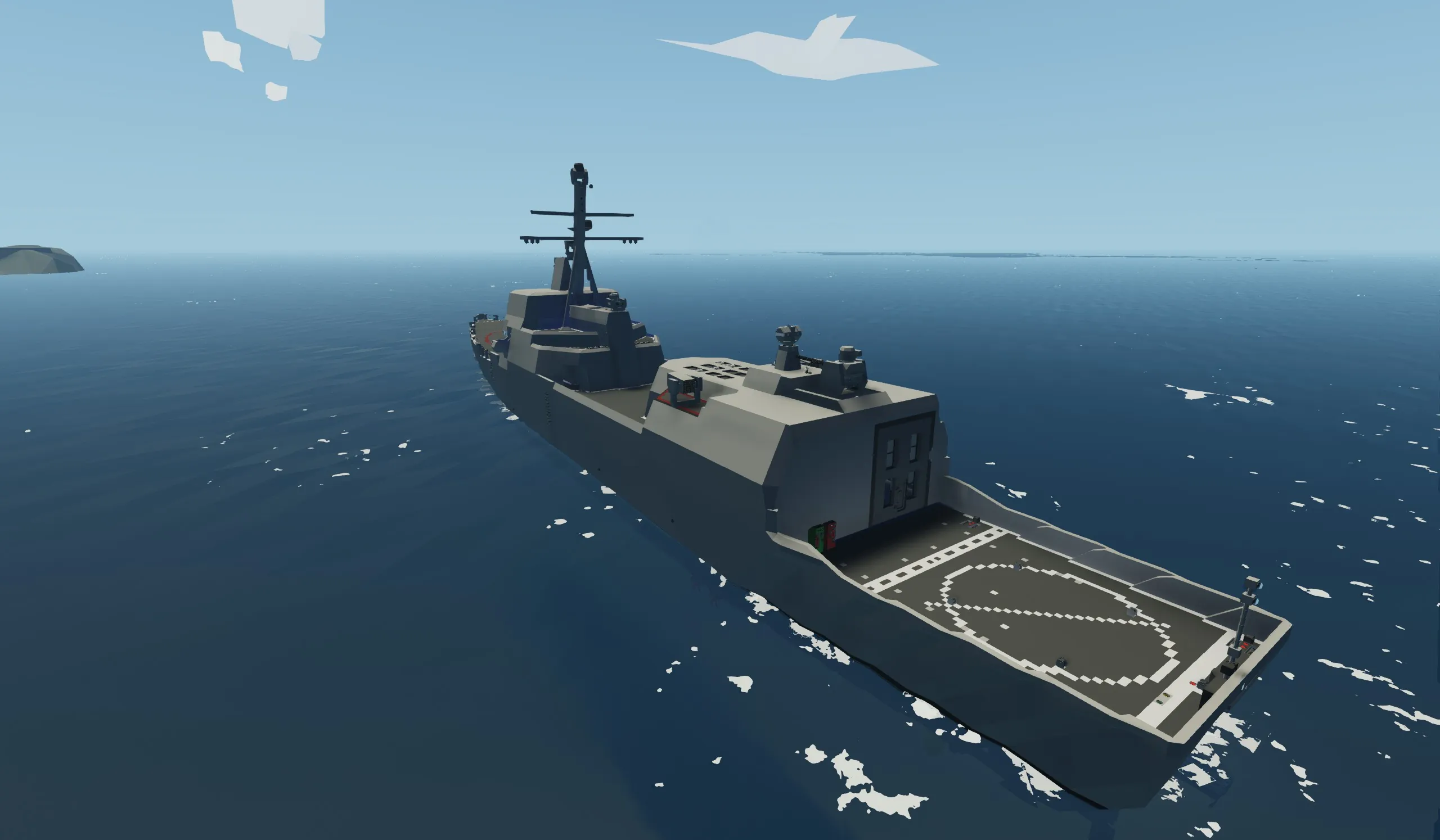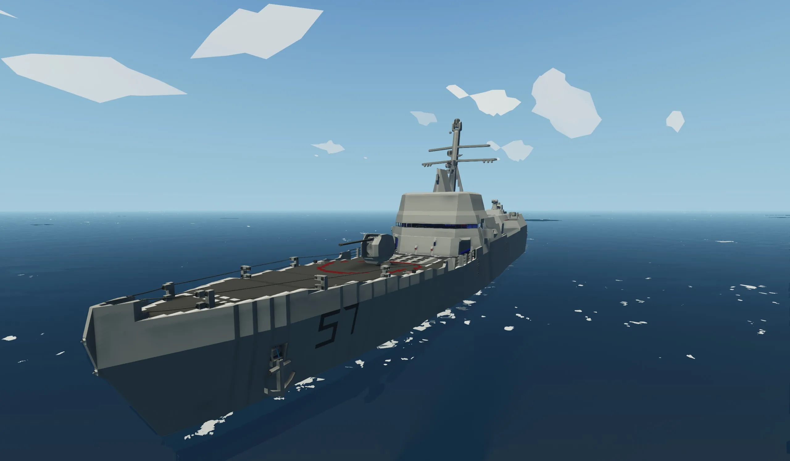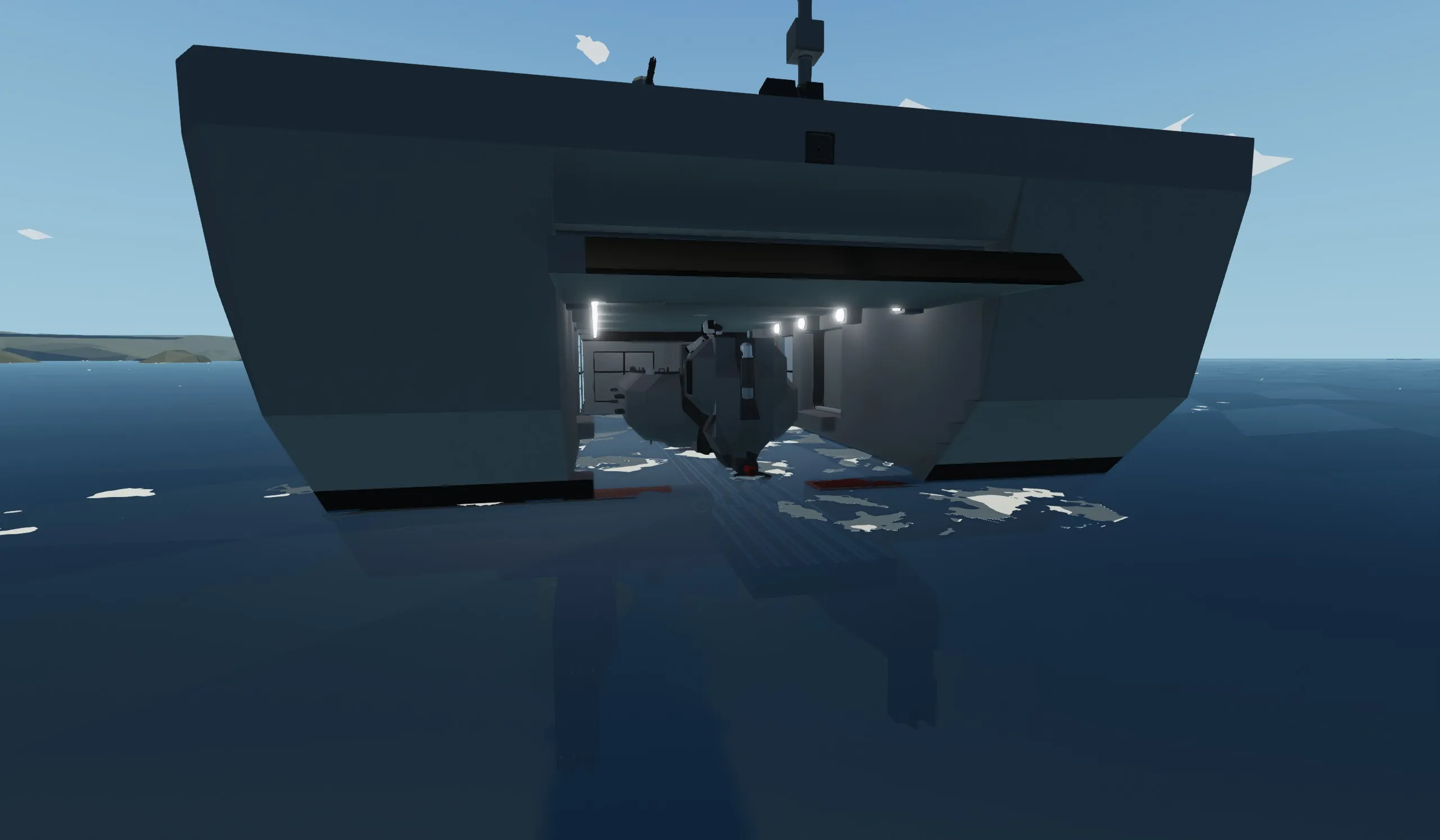 Unlike my other ship, this has taken 4 years to get to this point. this ship is built mainly for single players wanting to fight AI or their friends one on one. this ship is built to take damage and stay afloat even with major flooding. it is very fast at 49 mps powered by 2 electric engines.