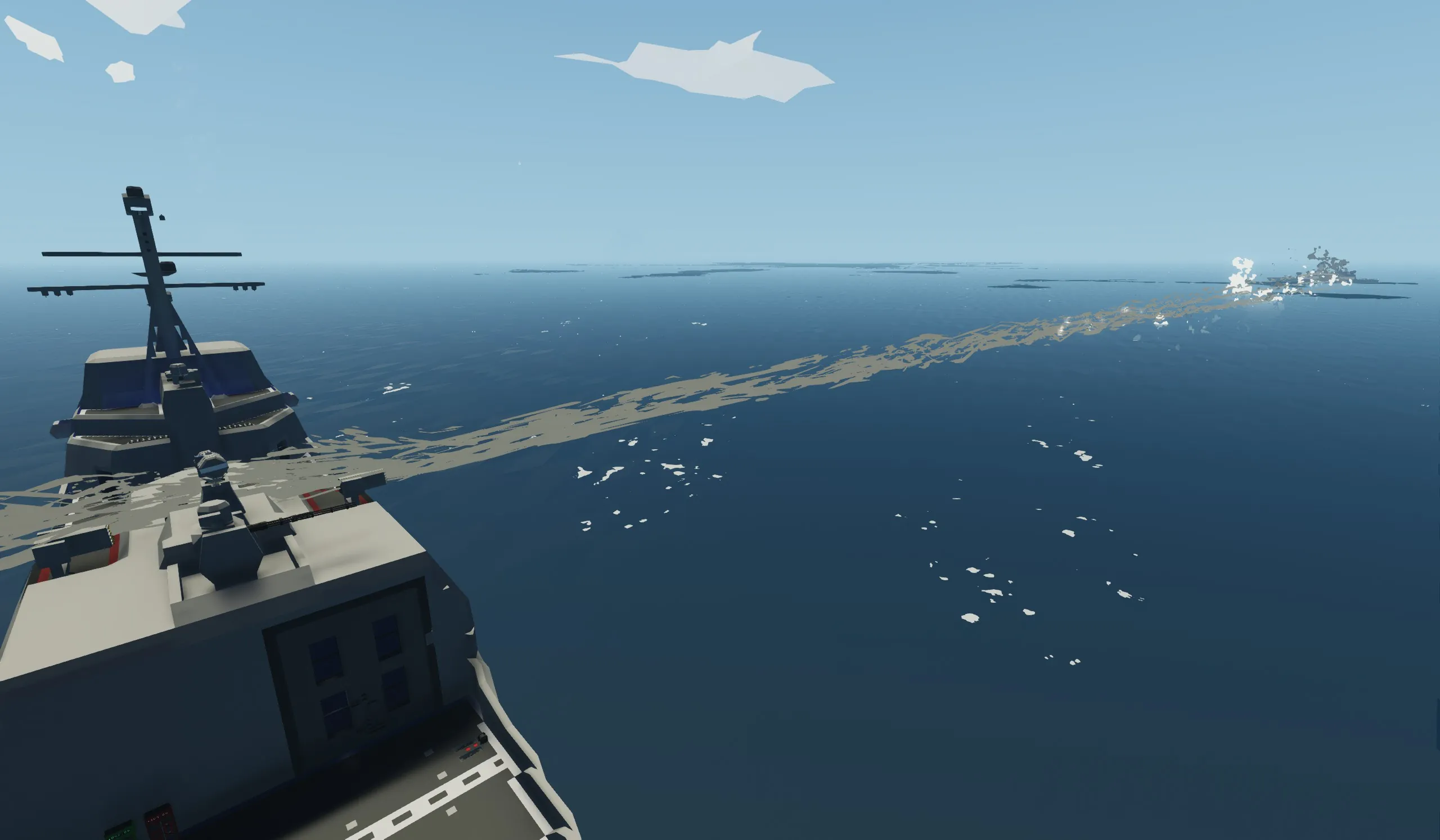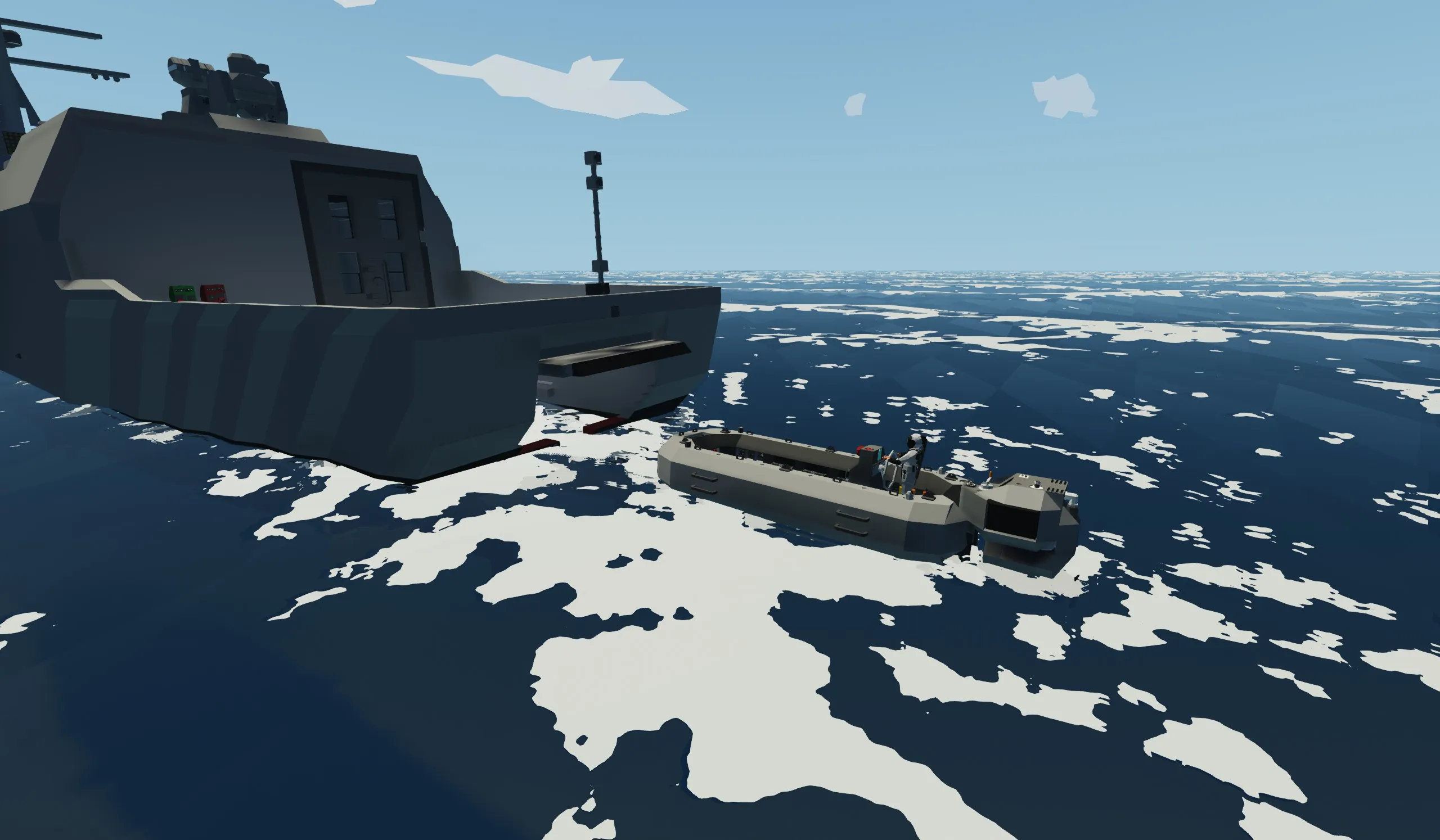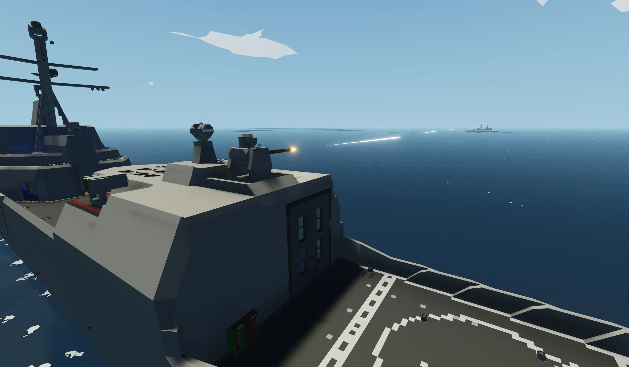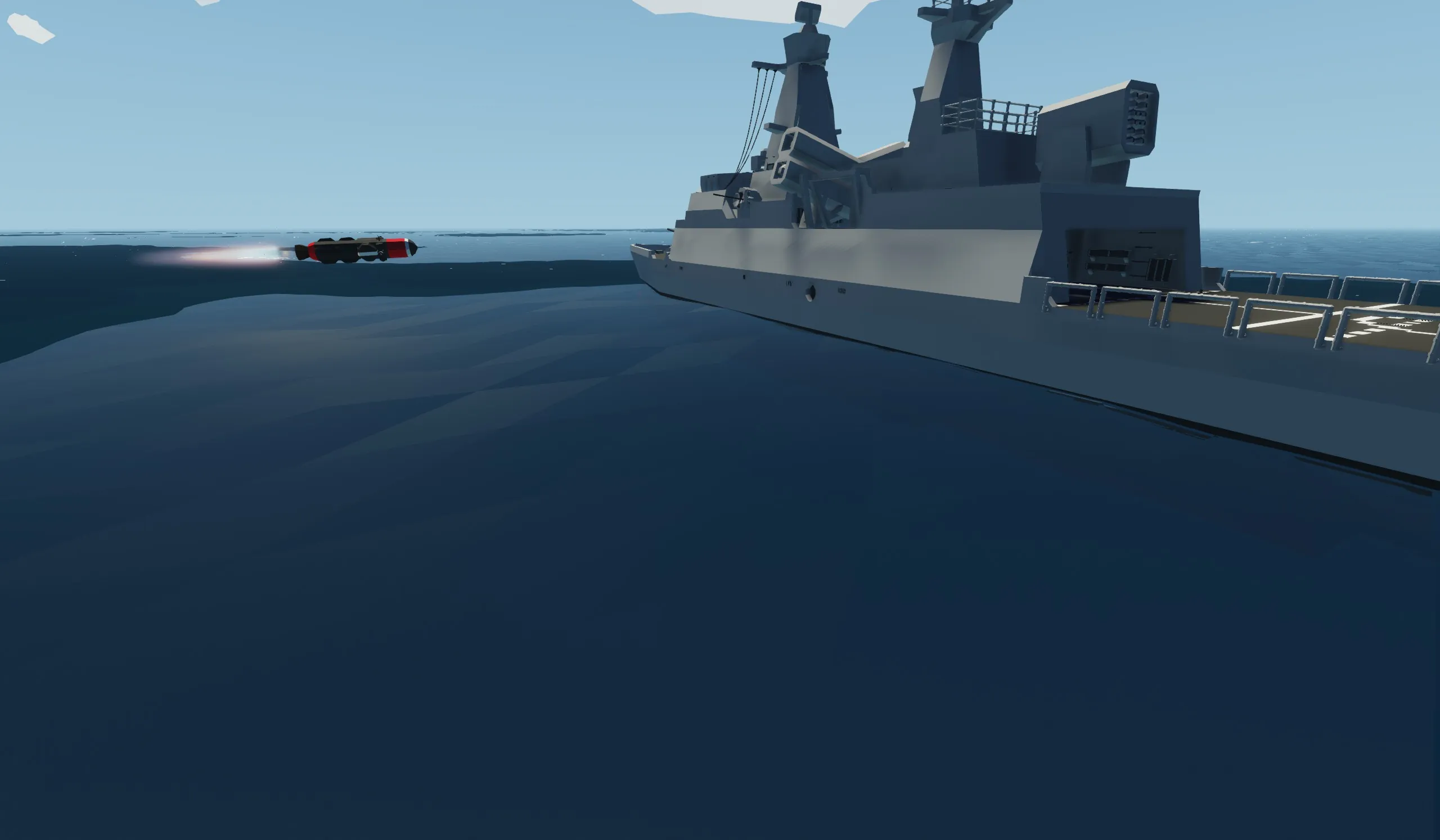 Unlike my other ship, this has taken 4 years to get to this point. this ship is built mainly for single players wanting to fight AI or their friends one on one. this ship is built to take damage and stay afloat even with major flooding. it is very fast at 49 mps powered by 2 electric engines.