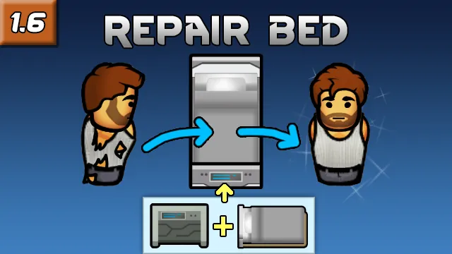 - Repair bed: Repairs 1 HP per 4000 ticks, of 3 randomly picked repairable equipped apparel, per sleeper (mean reparation rate: 0.75 HP / kilotick-sleeper). Only repairs equipped apparel, weapons remain unrepaired.