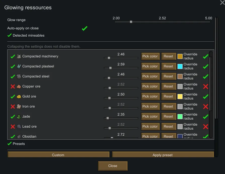 - Settings apply faster than your colonists forget social fights. No restart. No reload. Just glorious, immediate luminescence when you close your settings (if you toggle the option).