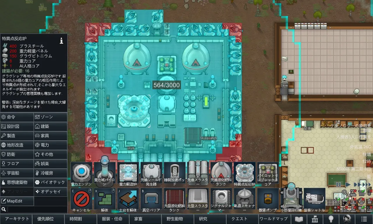 [*] 特異点反応炉:グラヴシップ専用のリアクターです。8基の重力コアが相互作用することで特異点が形成され、そこから膨大なエネルギーが抽出されます。深刻なダメージを受けた場合、大爆発する可能性があります。
