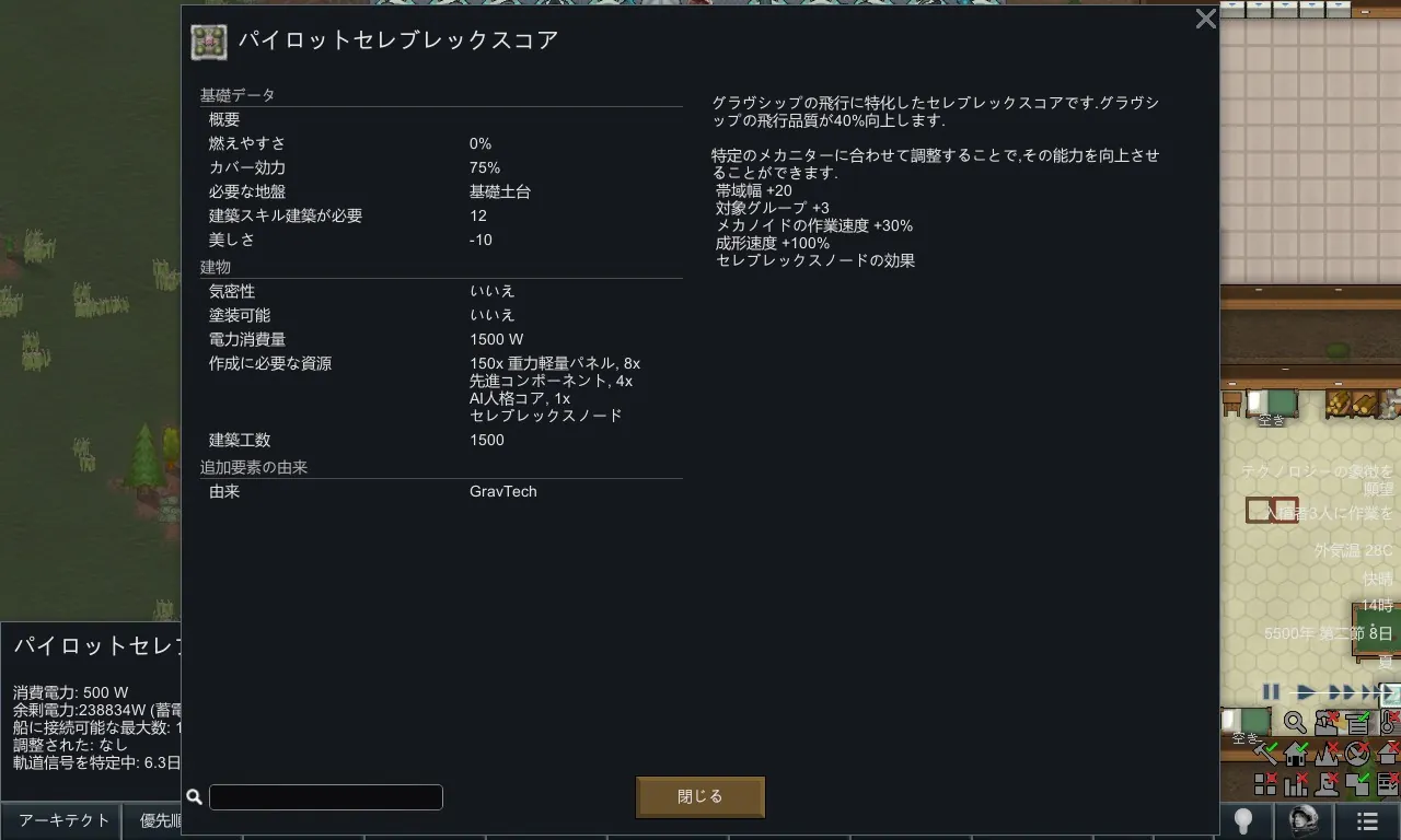 [*] パイロットセレブレックスコア:グラヴシップの飛行に特化したセレブレックスコアです。飛行性能を40%向上します。専門のメカニターとリンクする事でメカノイドバンドを大幅に強化する事が出来ます。