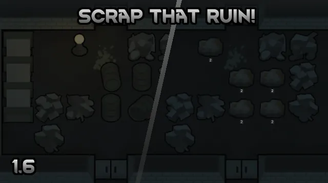 A lightweight patch that accommodates a scavenger-style playthrough. Makes ancient structures useful in a pinch as a source of basic materials. Small buildings and certain floors yield materials when deconstructed, while larger objects remain unchanged and drop steel slag chunks when destroyed.