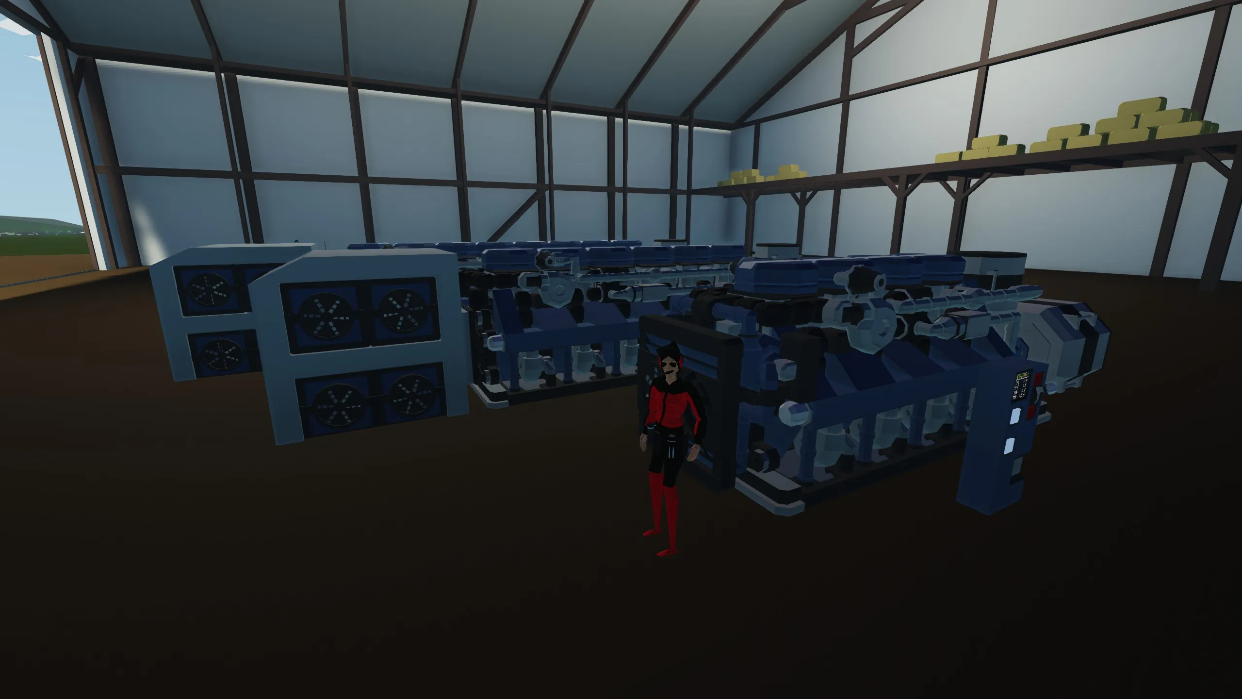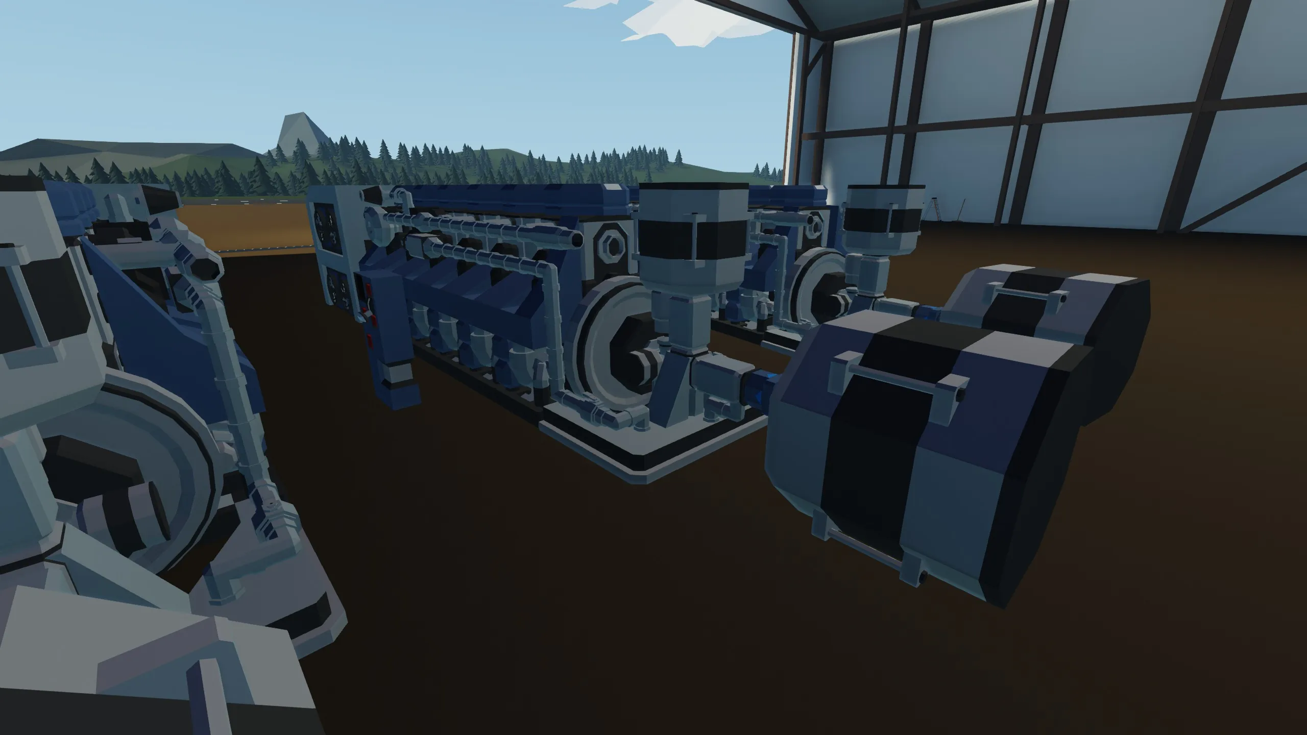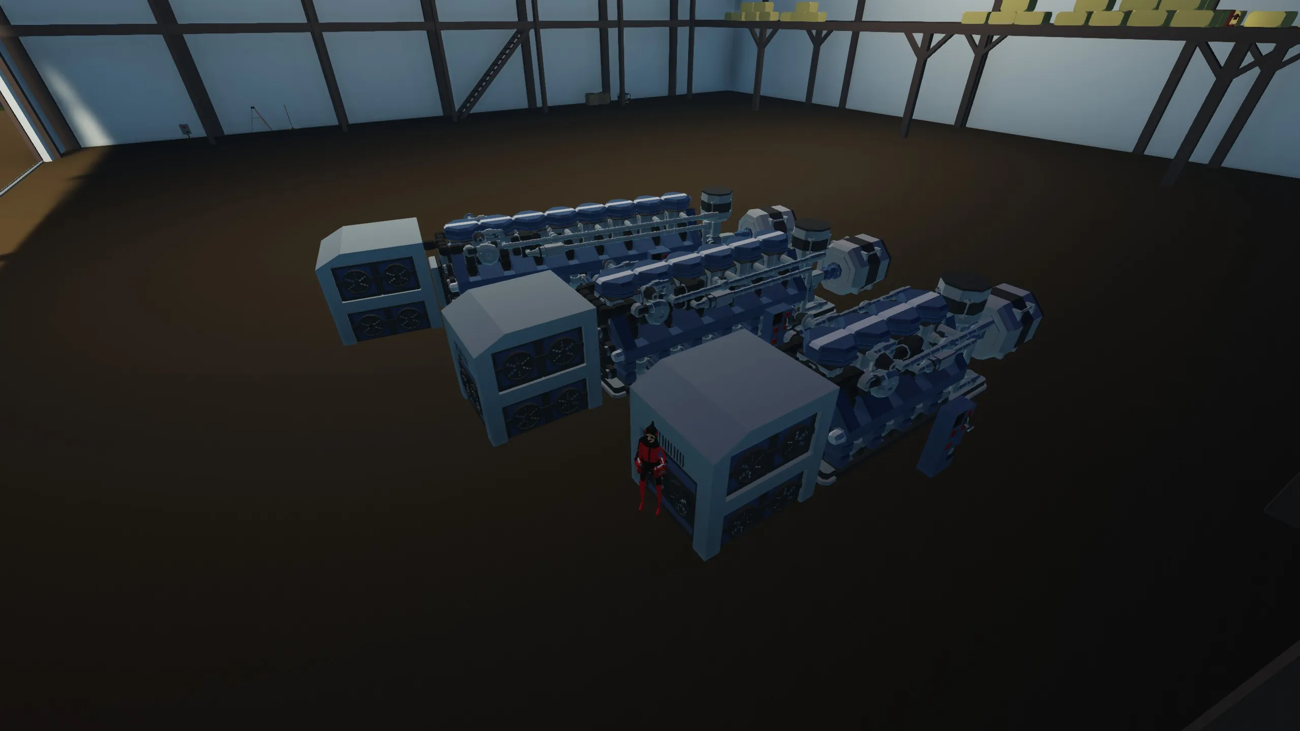 Collection of 3 engines with the same theme, to connect it the fuel intake is on the bottom by the generators, the air is the air filters by the front of the engines and the exhaust is pretty obvious I believe in you =D.