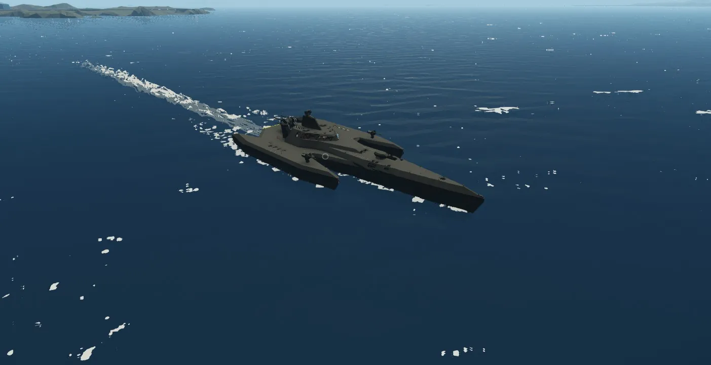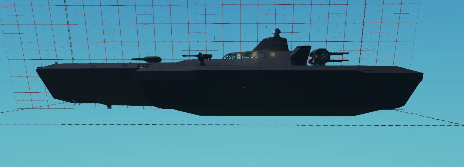 This is the second improved version of my high speed attack craft that is also very good at rescue, fire, and recovery of boats/people. I have modified the fluid jet controller for more stability and less tendency to leap out of the water as well as better turning radius. The fluid jets have also moved vertically up so the center row lines up with the CG. Like the original, it still the spare diesel tanks on both port and starboard sides to refill boat missions. It is a more heavily armed and has plenty of bilge pumps to handle any flooding, it has to medical beds and enough seating for multiple missions. Interiors and decorating are very difficult for me so it is very spartan. It is powered by a nuclear powered pistons and produces plenty of power for the fluid jets. Top speed is around is a bit slower than the original at 80+ knots but I am still tweaking it. There are 3 buttons above the drivers seat marked Normal, Rough Weather, and High Speed. Startup for the reactor is automatic and takes a couple of minutes to get up to speed, there are gauges on the left side of the control seat for reactor temp and RPS. WASD is for throttle and steering. Left/Right/Up/Down are for aiming the targeting system. There is a radar activation on the left side of the big screen, another to lock on target, automatic fire, and burst firing. There is now also a night vision button that works with both the main screen and viewing port. I have all the weapons setup to (hopefully) not shoot the ship itself. The right hand screen and controls are for the missiles, There are also two buttons on both the left and right side controls for Fore/Aft Rockets. (Make sure to open the doors first). I am going to continue to update this as I fix more stuff on my local copy and I test it enough to know it won't wreck your day.