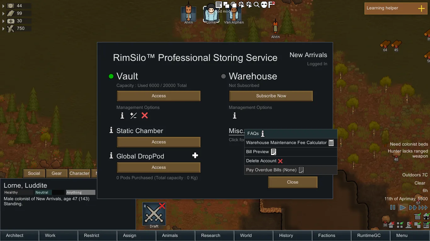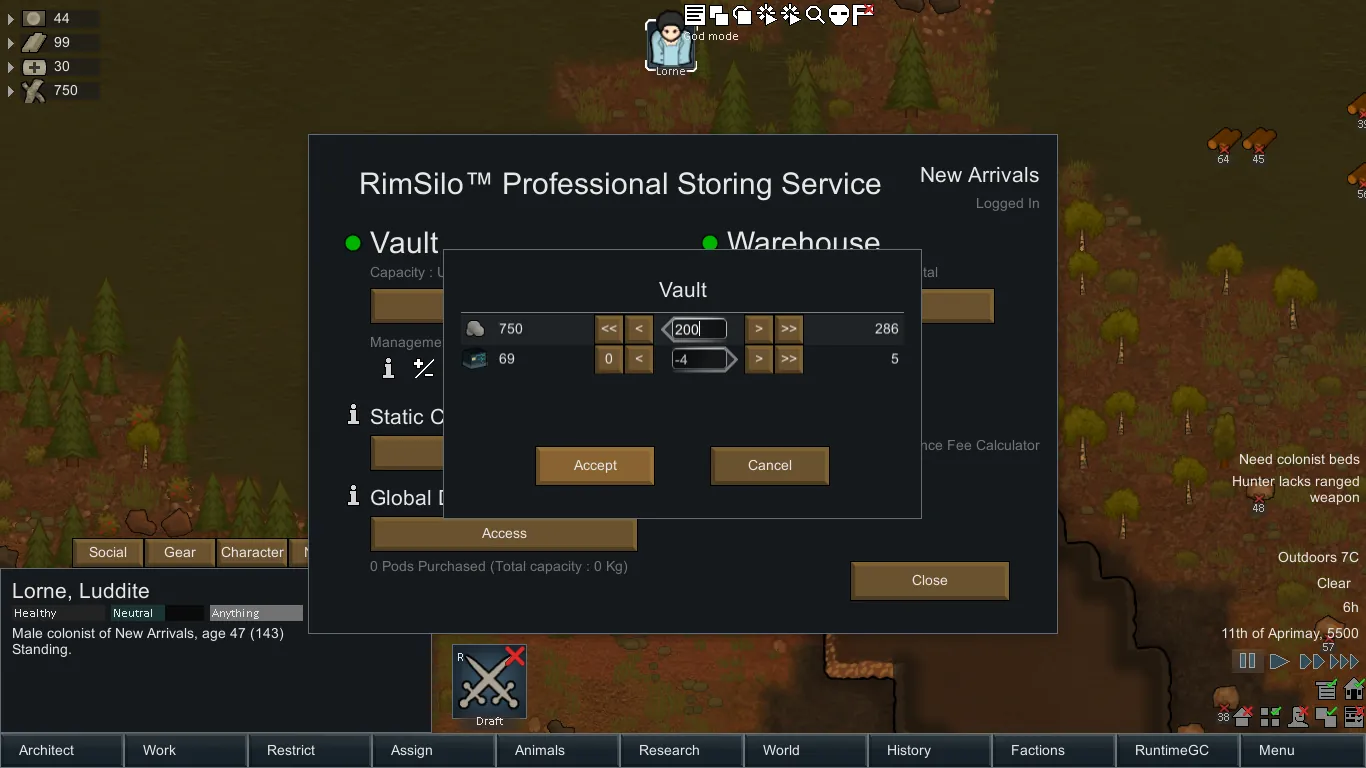 PS. [b][u]Select a colonist and right-click the ATM Terminal, then select "RimSilo™ Professional Storing Service" in the float menu to access the UI.[/u][/b]