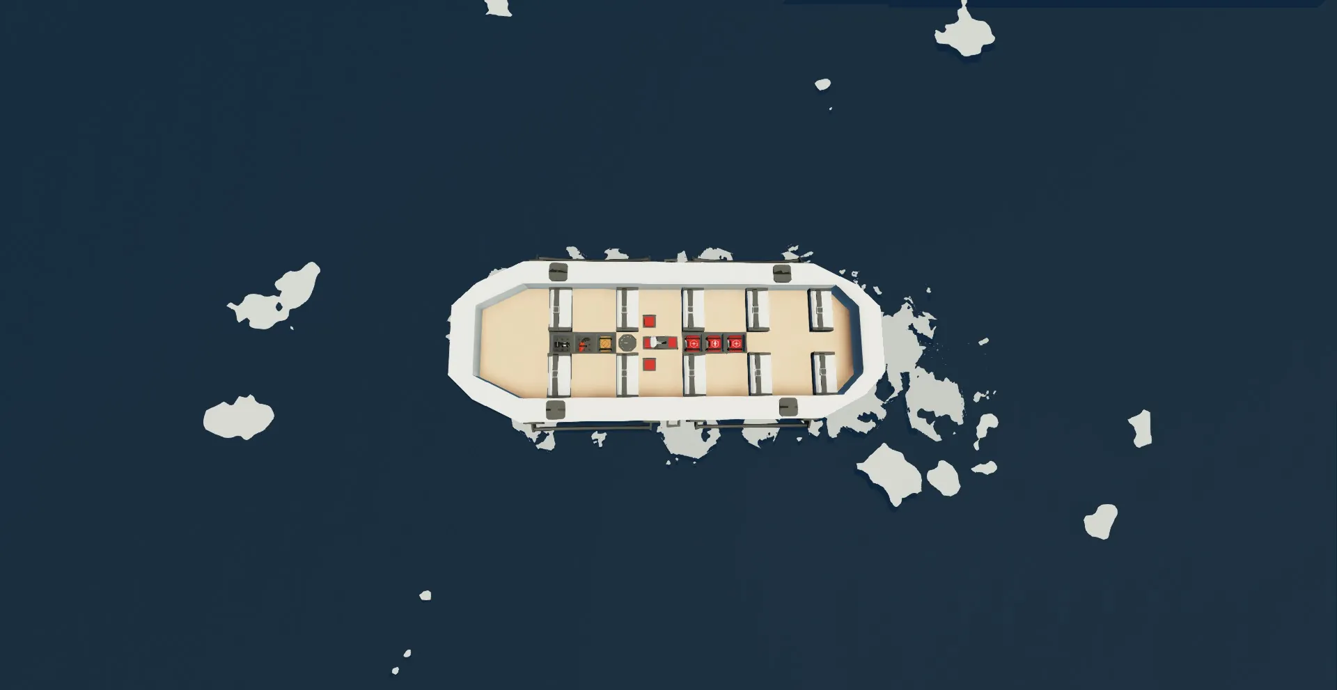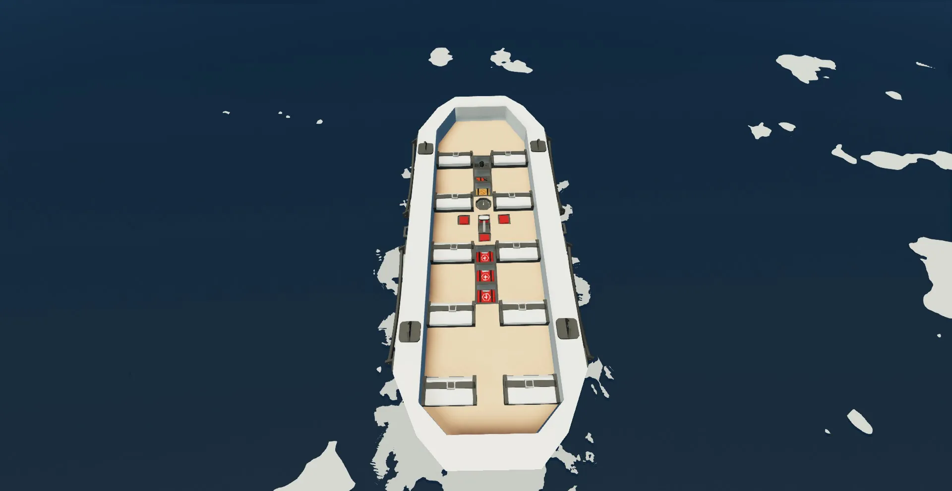 use the ropes that are already on the ship and connect them to the connected via other rope connections I recommend that you use a large boom system to keep the life boat from staying on the connecting ship to long after it sinks, a larger boom can also provide a better way of releasing the life boat as the boom can extend from the connected ship to release the life boat from the connecting ship directly into the water.