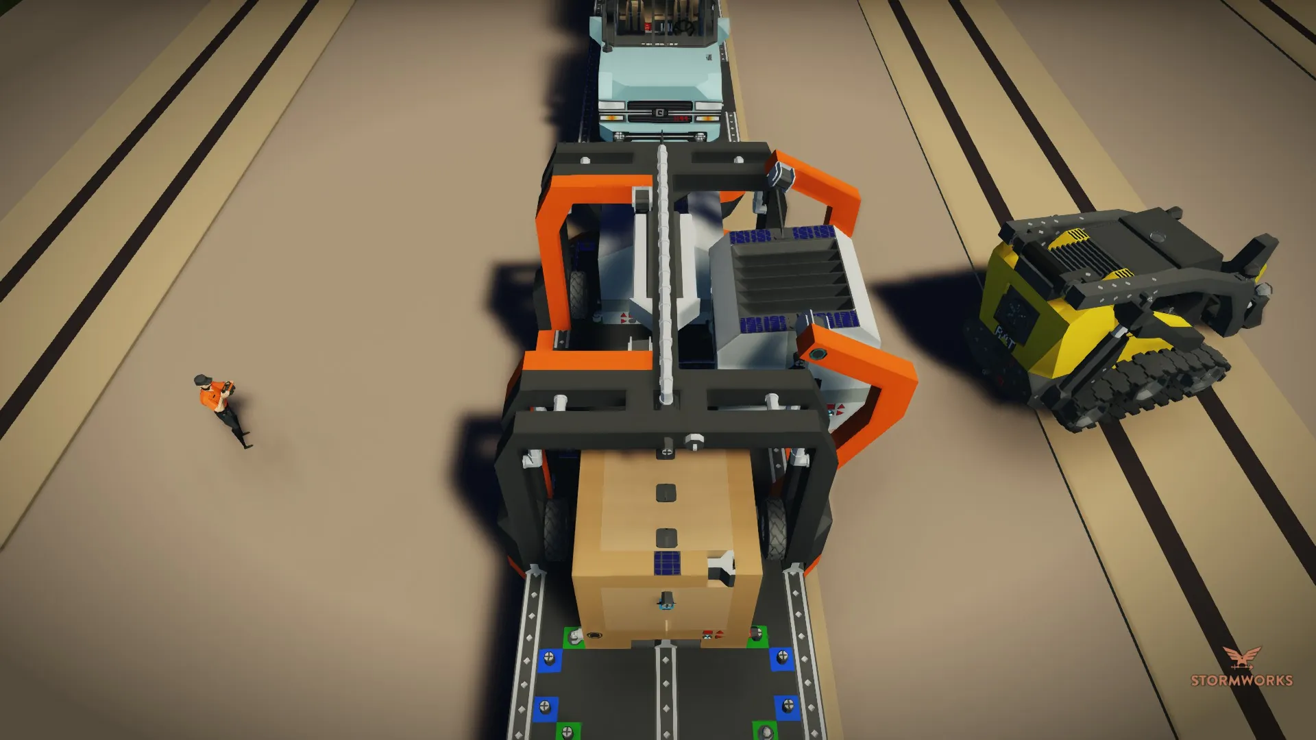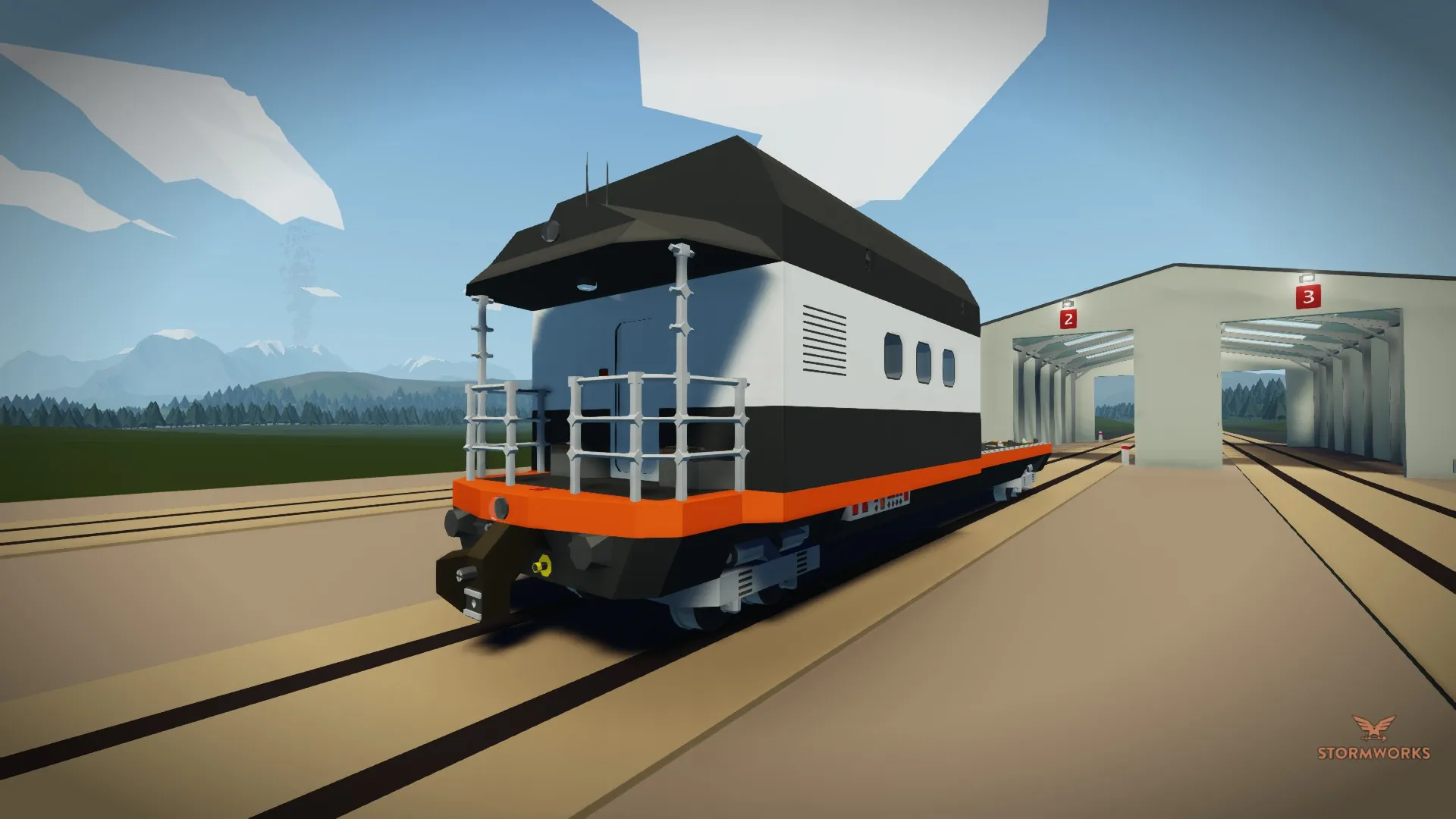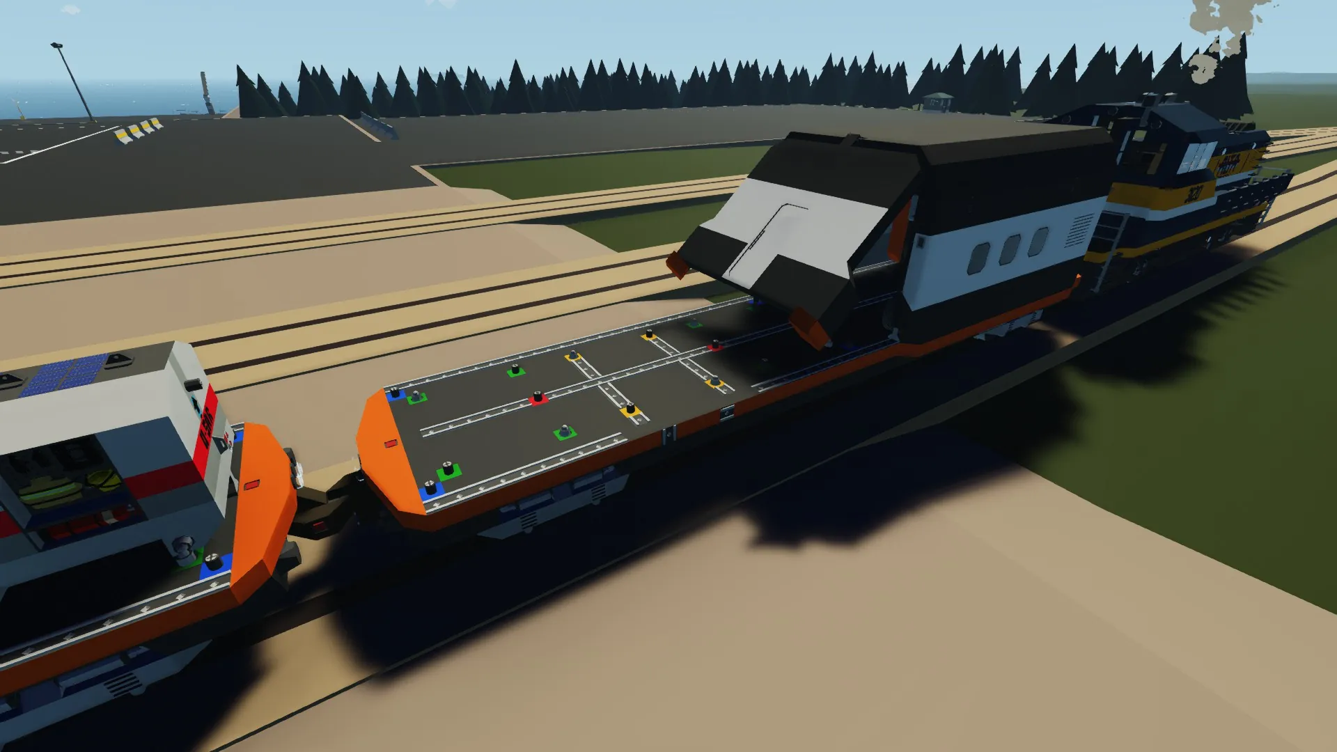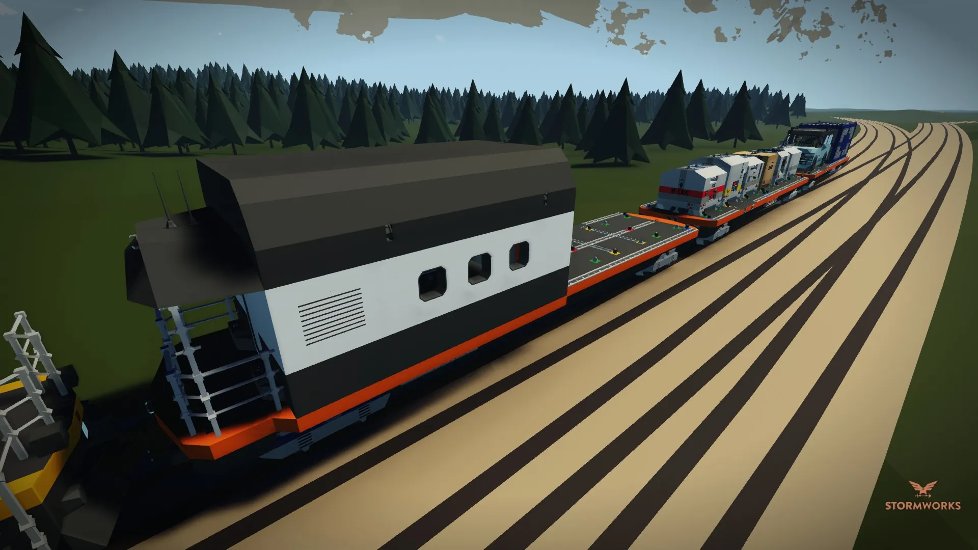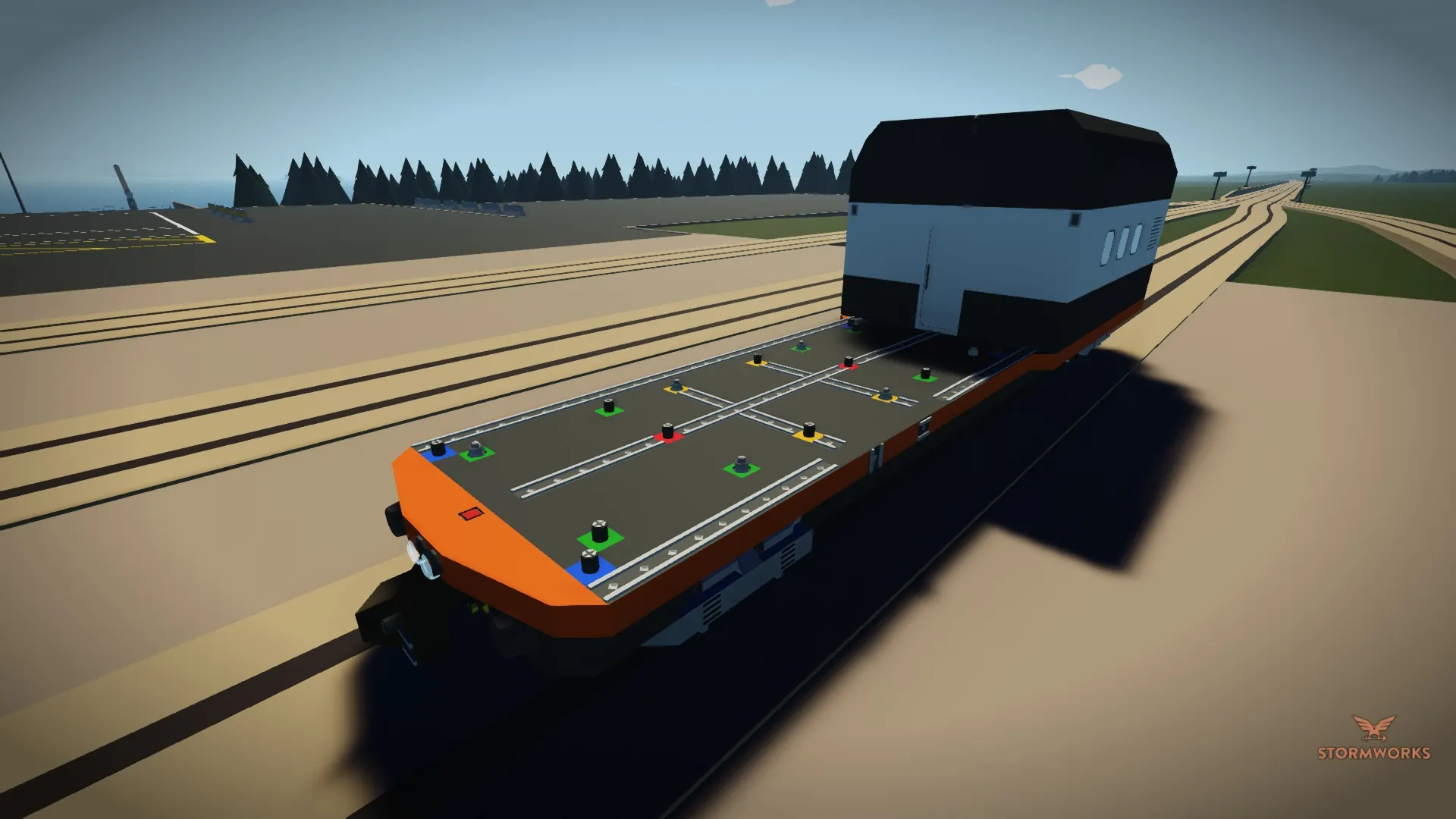 This is a car that houses and acts as a control relay for a Unicon gantry crane, By using a remote controller, an operator is able to traverse the crane over the compatible flat cars and handle loading and unloading of any Unicon container that has rope anchors on top. In addition, there are couplers on the sides for RAT platform loaders.