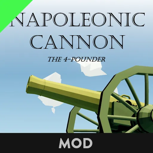 This mod introduces a cannon known as the 4-pounder from the Napoleonic era to Stormworks. These cannons saw consistent usage in the American Revolution, French Revolution, Seven Years' War, The War of 1812, the Napoleonic Wars, and other conflicts throughout the 18th and 19th centuries. The 4-Pounder was part of the Gribeauval system. It had a barrel length of 1600 mm and barrel weight of around 620 lbs with an effective range of around 500-600 yards, and was capable of firing 1-2 shots per minute.