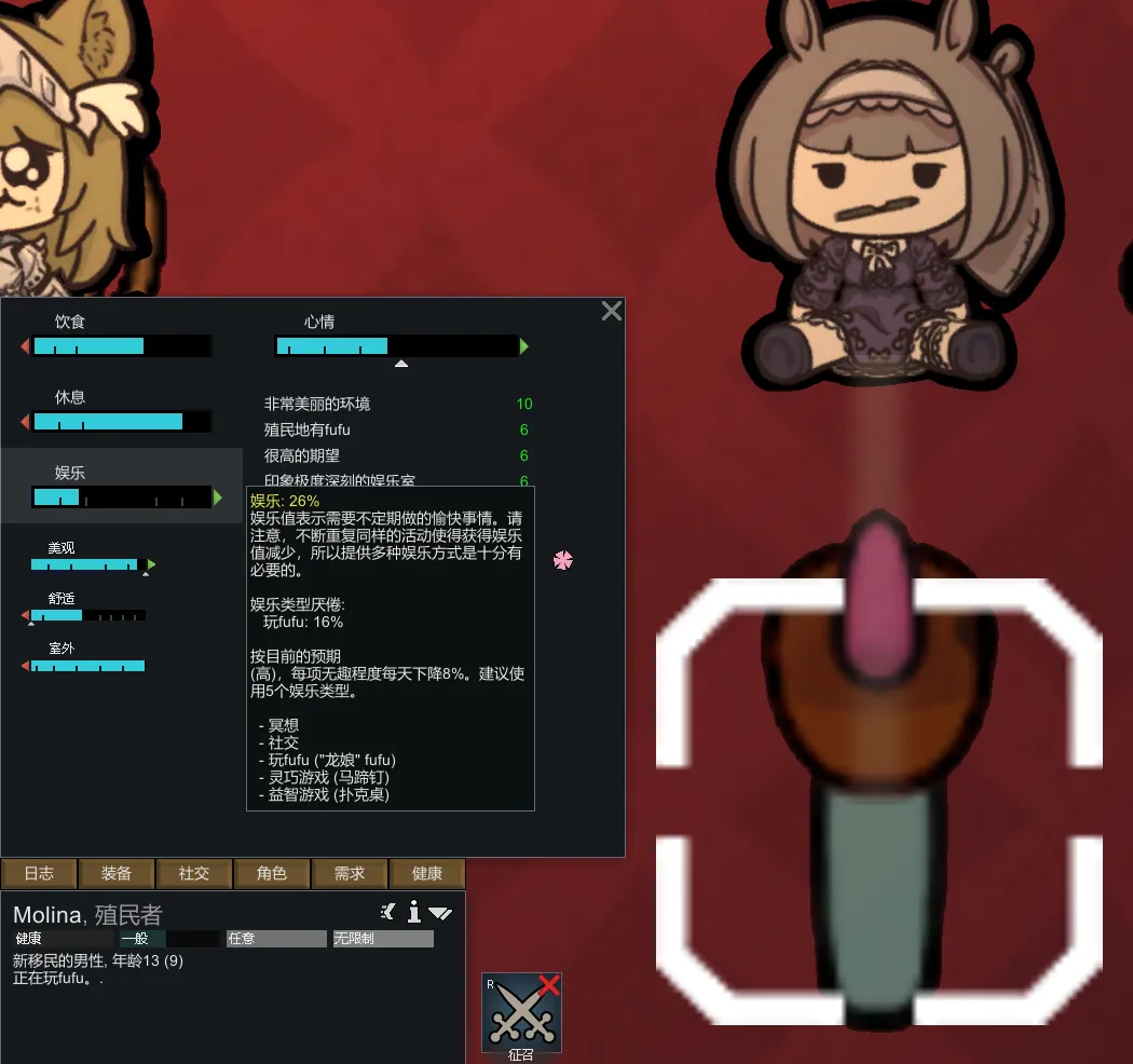 2025/04/04: Now fufu can no longer be obtained by building, but by making at "mya's sewing machine". This sewing machine will spawn through incidents after you have at least 20 fufu in your colony.