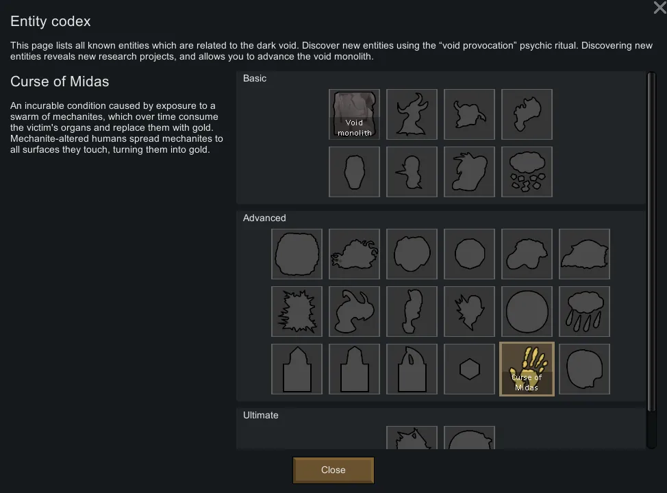 The mod adds a new anomaly to the game - the Midas curse. This is a condition that develops as a result of the capture of the body by a colony of mechanites, who replace biological tissue with gold. The infected loses cognitive functions and resembles a shambler. The cursed turns everything he touches into gold.