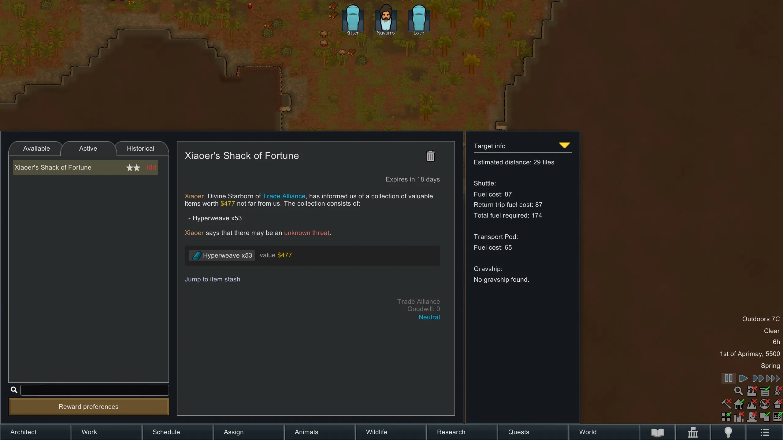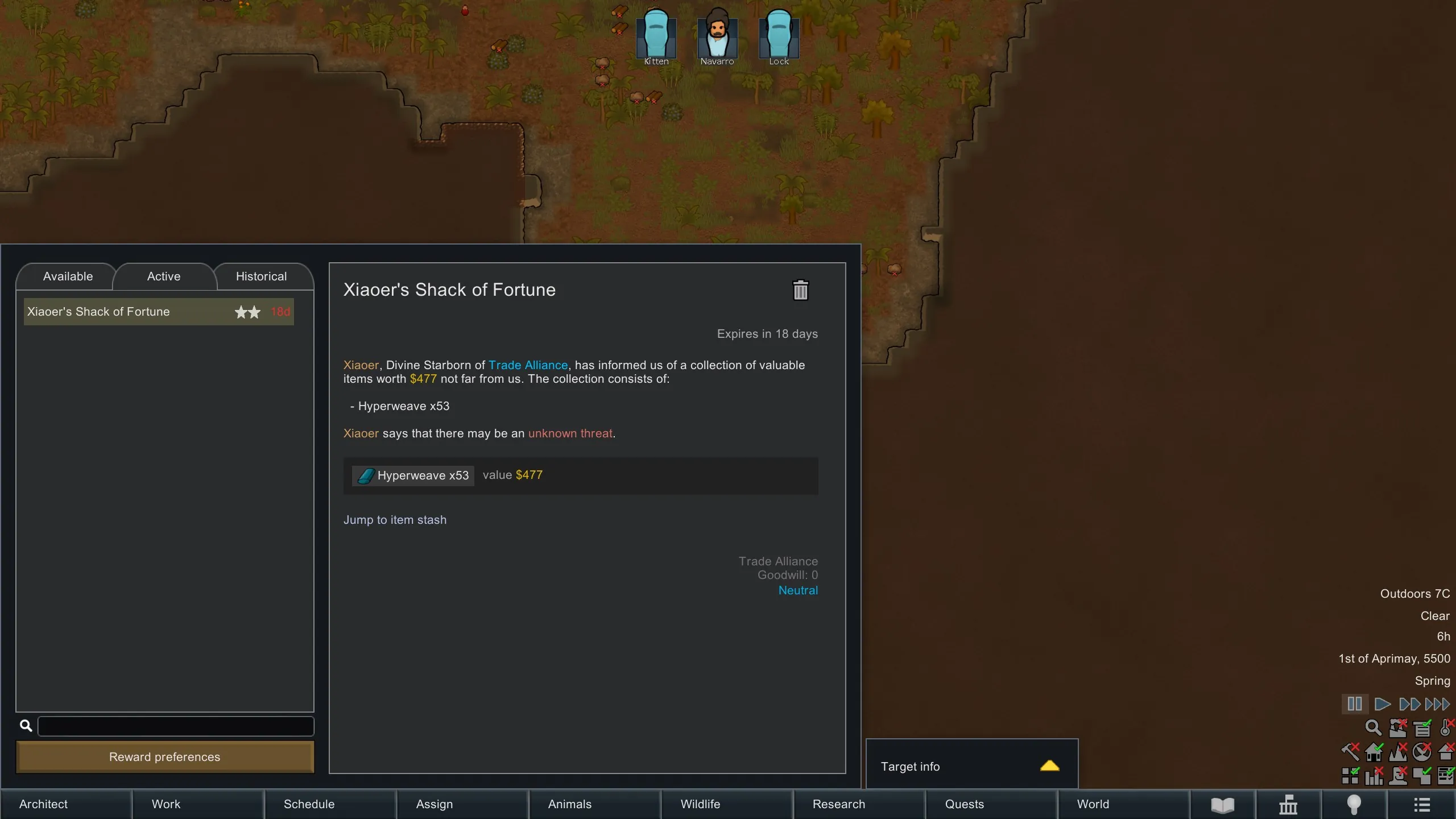 When a quest with a world target is selected, an info window automatically appears on the right side of the quests tab.