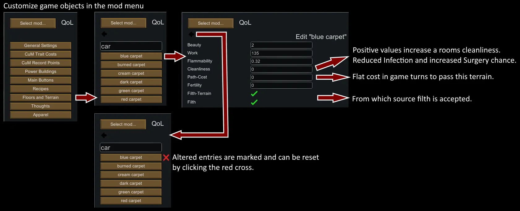 Adds over 1000 editable properties for game objects. This allows modding the game through an UI while it is running.