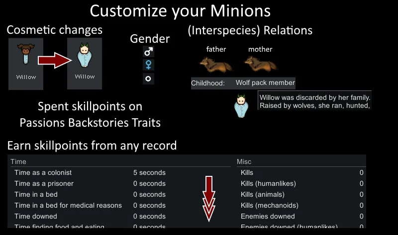 Ability to edit characters during a game with configurable costs for upgrade/downgrades. Points can be earned through any of the tracked records.