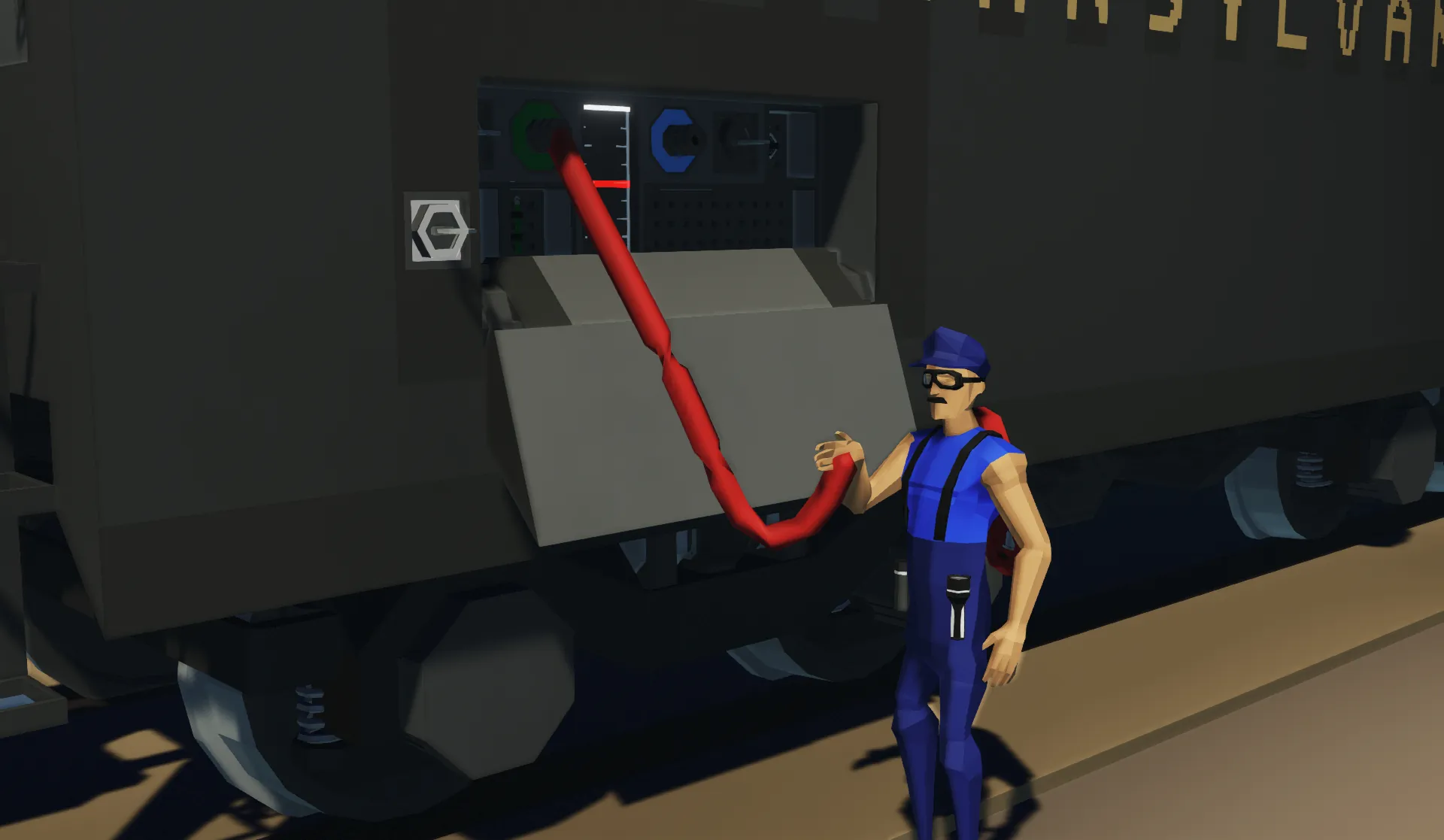 Spawn the loco and push it out of the workbench area, then you can spawn the tender and push it to the back of the loco and it will automatically hook.