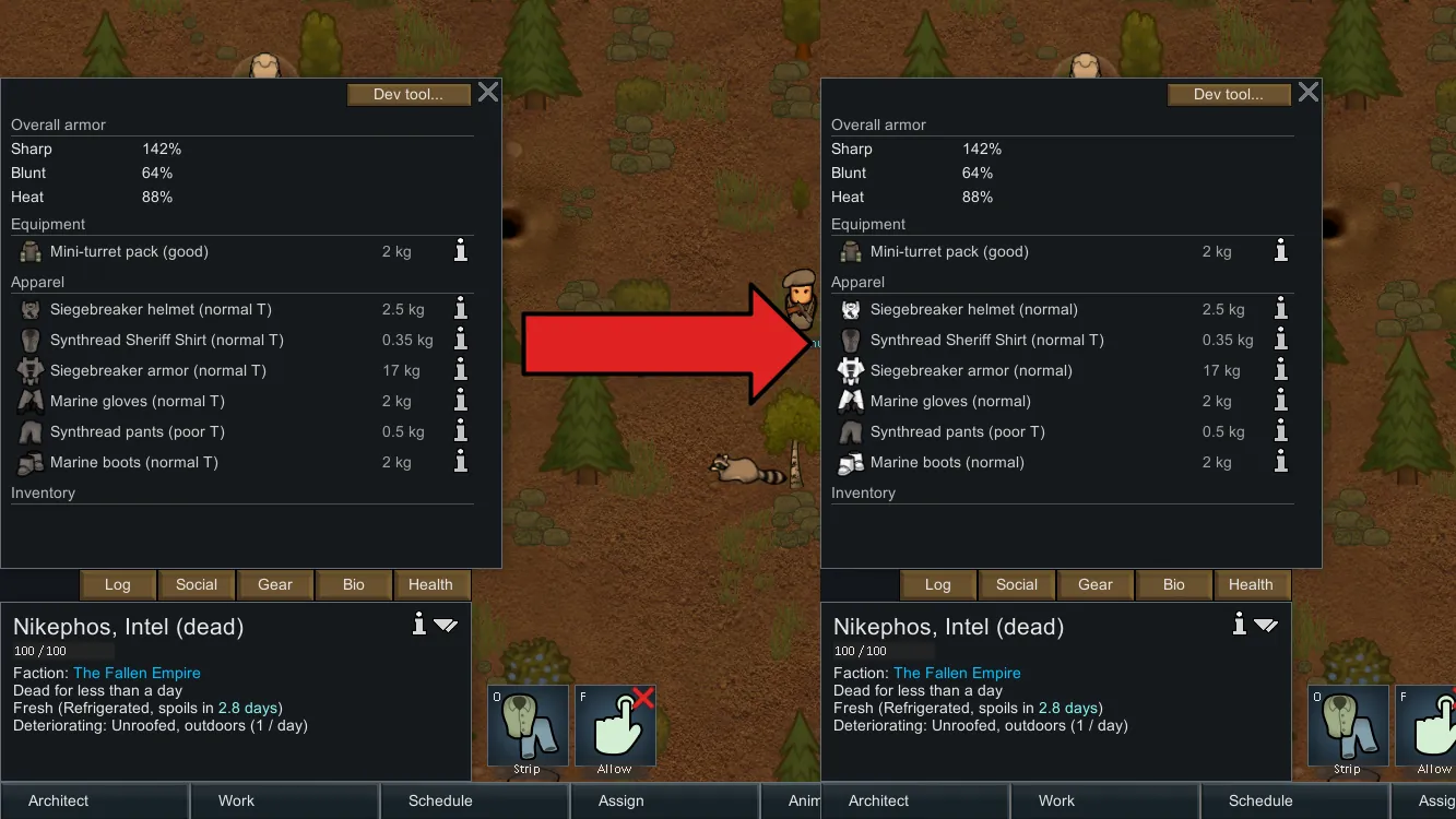 Makes it so only apparel created with leather or fabric gets tainted on death, meaning most armors or metallic clothing no longer gets tainted on death. I also patched flak armor, because I feel like that just makes sense.