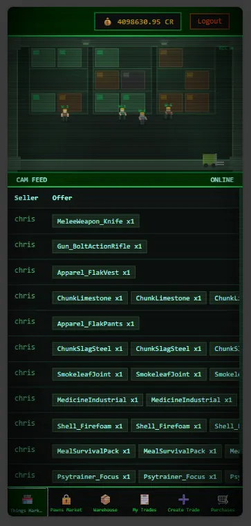 - Online multiplayer marketplace - trade across savegames