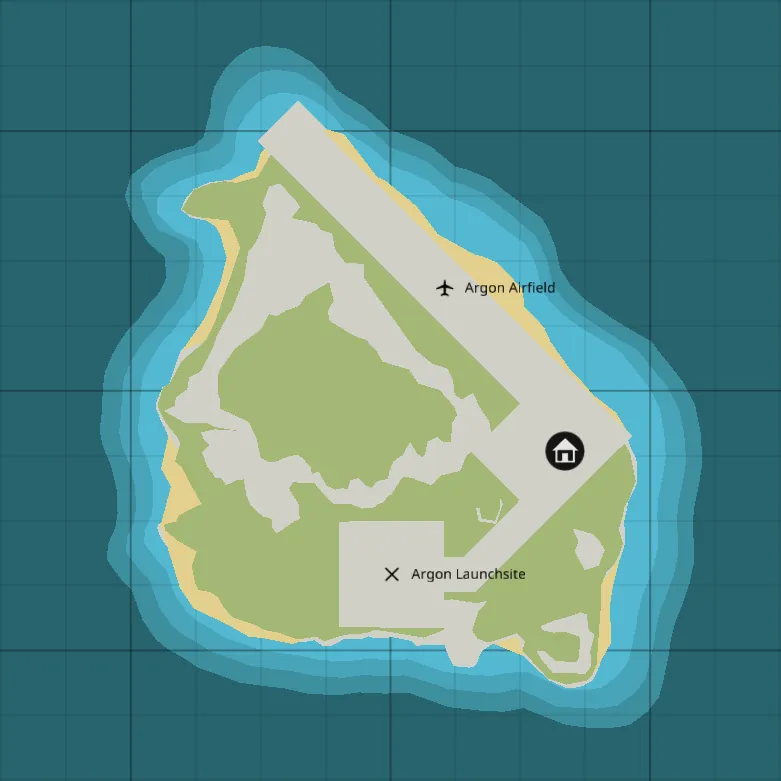 [b]Argon Island[/b] is the name of the new base on Earth. It replaces the [b]Custom Base Heli[/b], has a rocket lanchpad and a runway with a hangar. It costs 250.000. The launchpad is the biggest one in the game. It is so big that you can spawn a 1:1-Scale Saturn V there.