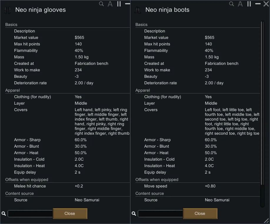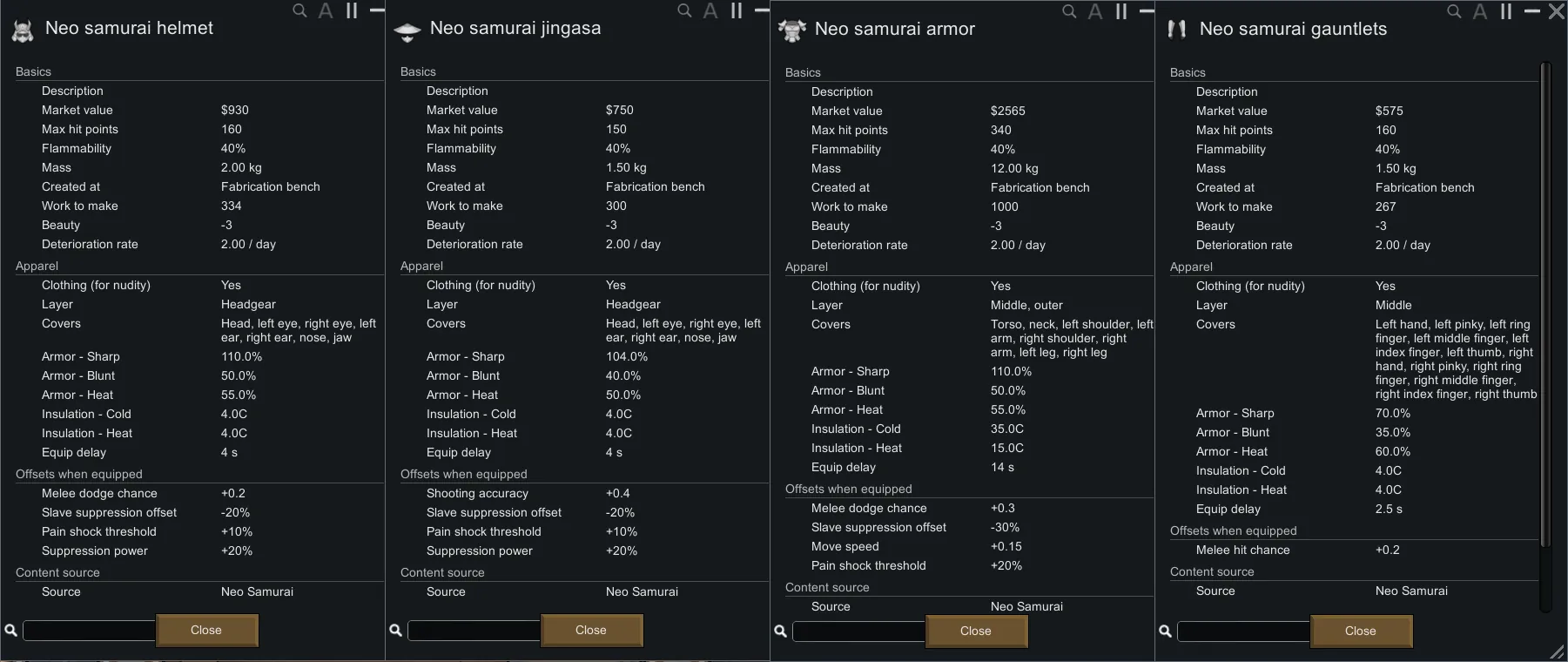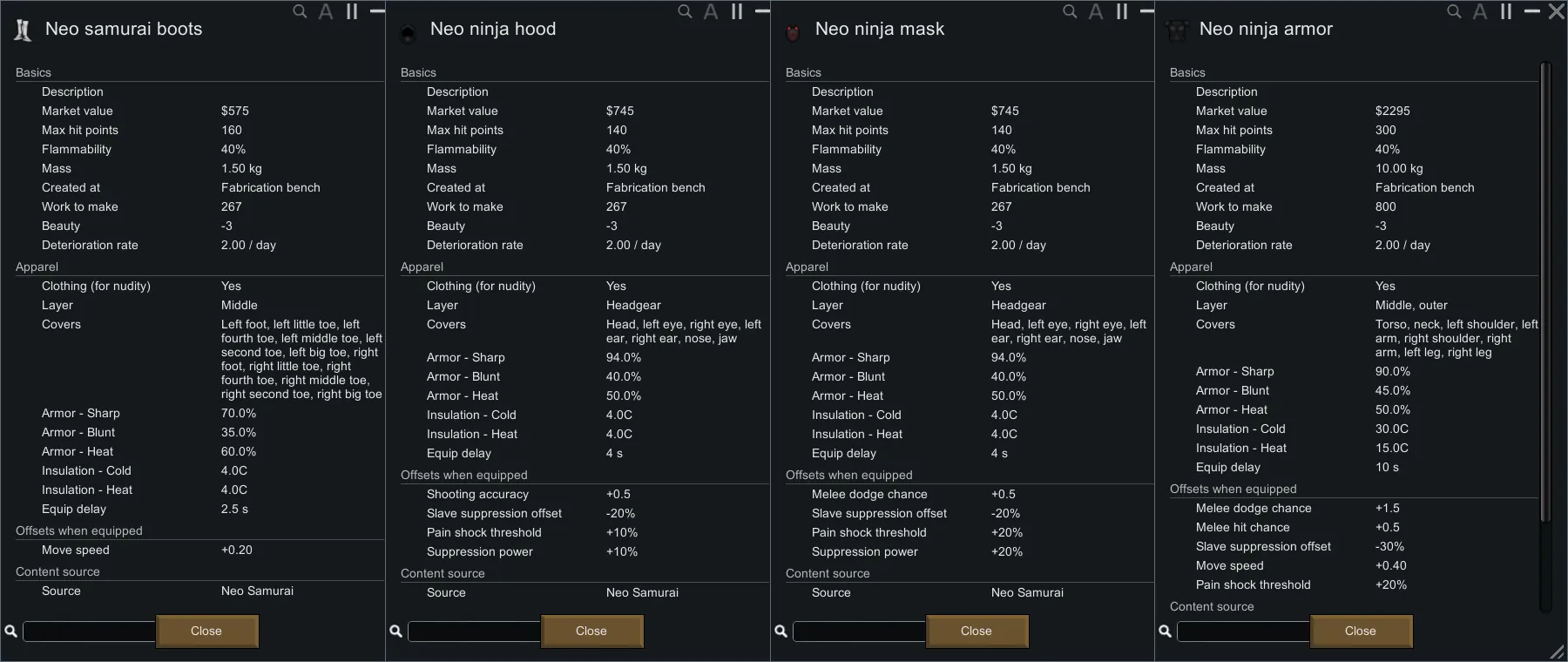 The neo samurai helmet and neo ninja mask provide a bonus to evade in melee attacks,