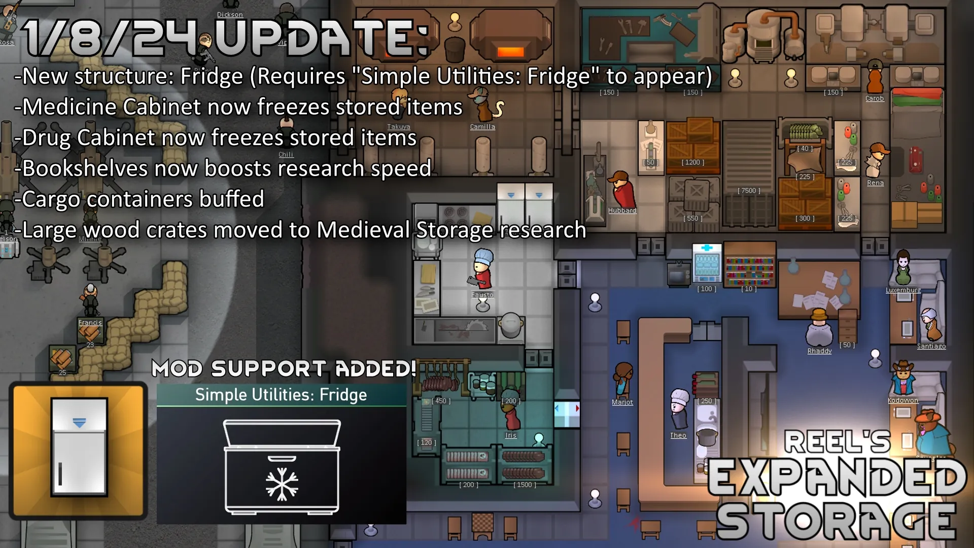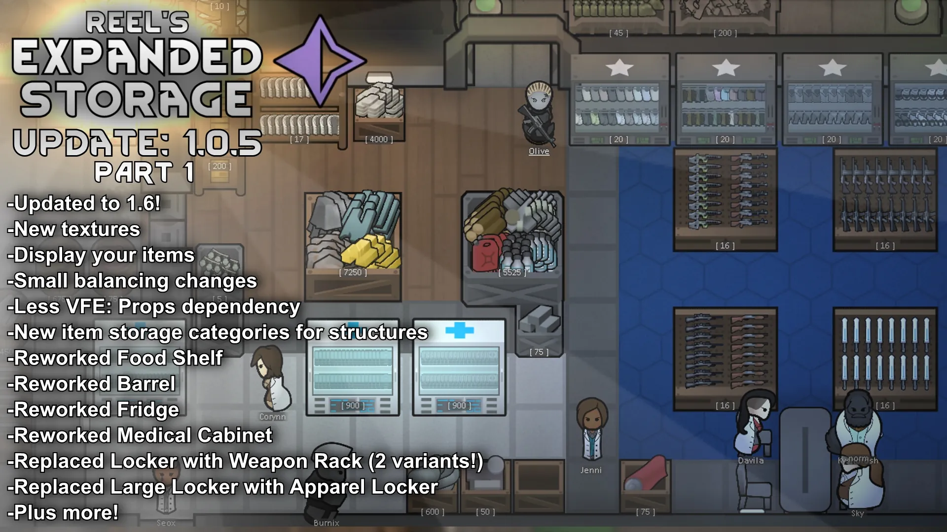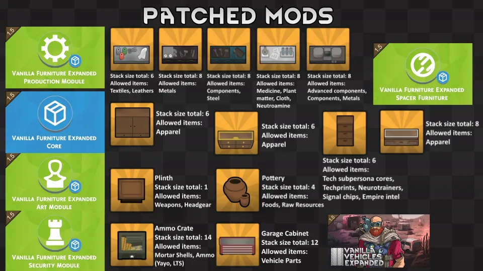 If you like seeing [b]items displayed neatly[/b] in storage structures, or if you're a fan of the faithful [b]Vanilla Artstyle[/b] from Vanilla Expanded, or if you enjoyed [b]high stack size[/b] storage mods like Simple Storage but wanted something a little toned down, or even wanted [b]linkable functionality[/b] for structures like Dressers or Cabinets... Then this is the mod for you!