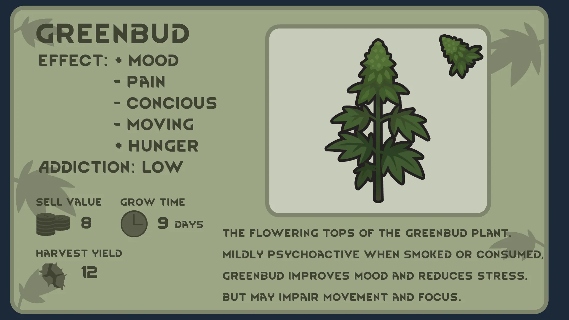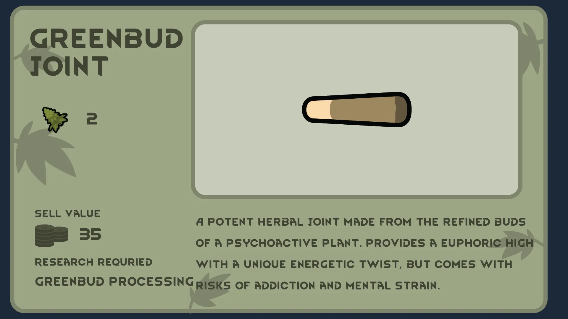 Expand your RimWorld colony with a variety of premium cannabis strains! Grow, trade, and process different types of cannabis, each with unique effects on your pawns.