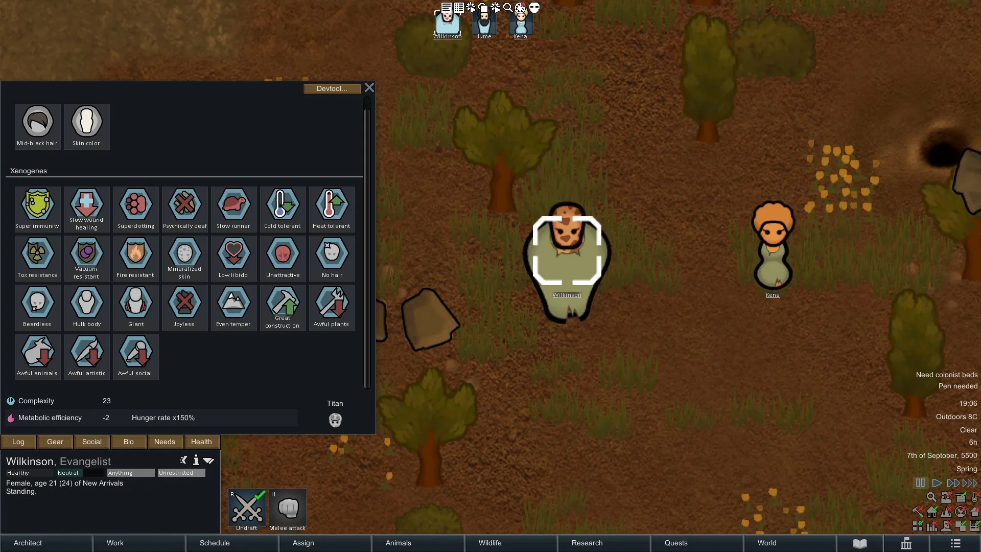 [*] [b]Rock Steady:[/b] Titans aren't just physically tough, they're also mentally tough. They have no need for recreation and don't get any penalties from not getting enough. They also never get traits that give permanent mood penalties. It's not all upside, though: they don't get mood bonuses from recreation or positive traits, either.