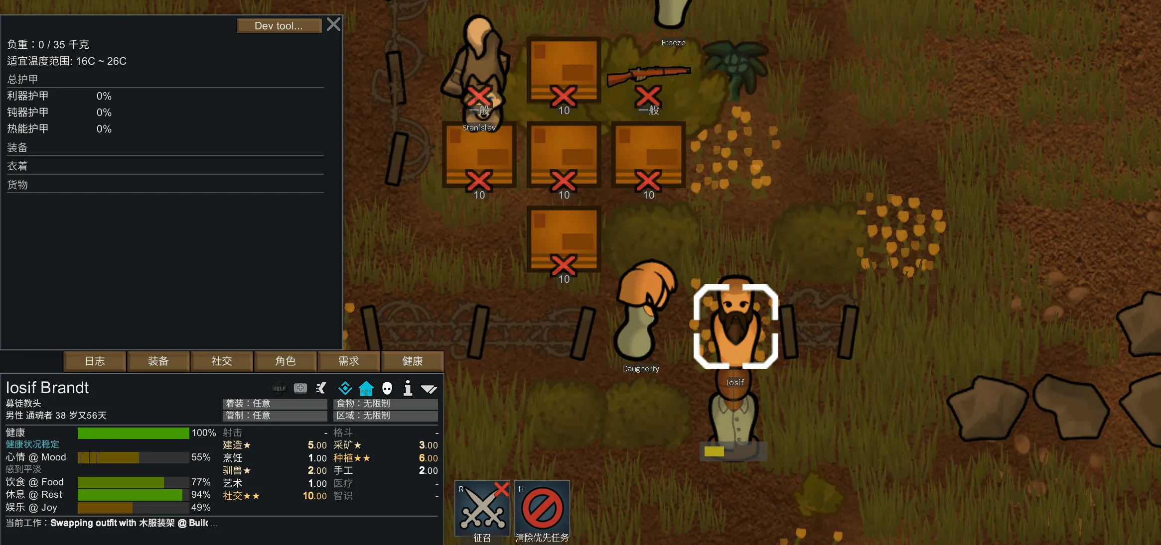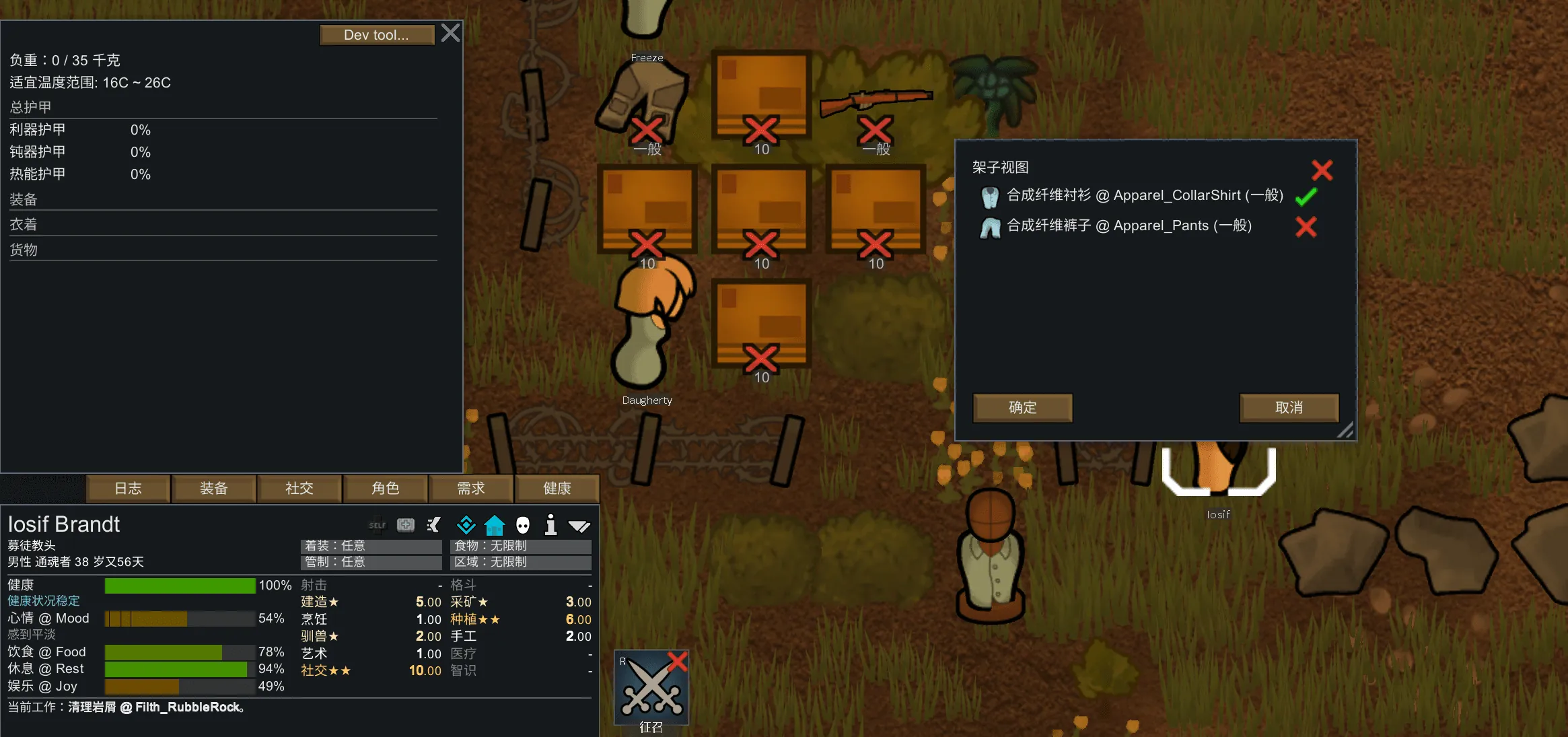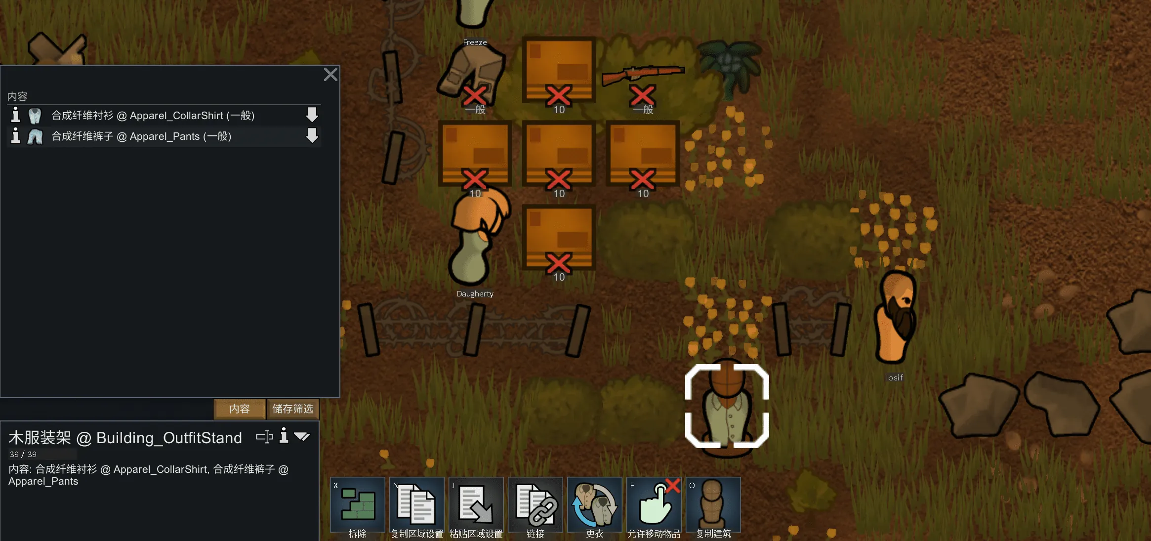 在架子视图中,你可以选择要从架子上取下的衣服,如果殖民者身上有与你选择的衣服冲突的衣服,你将把身上冲突的衣服放到架子上。