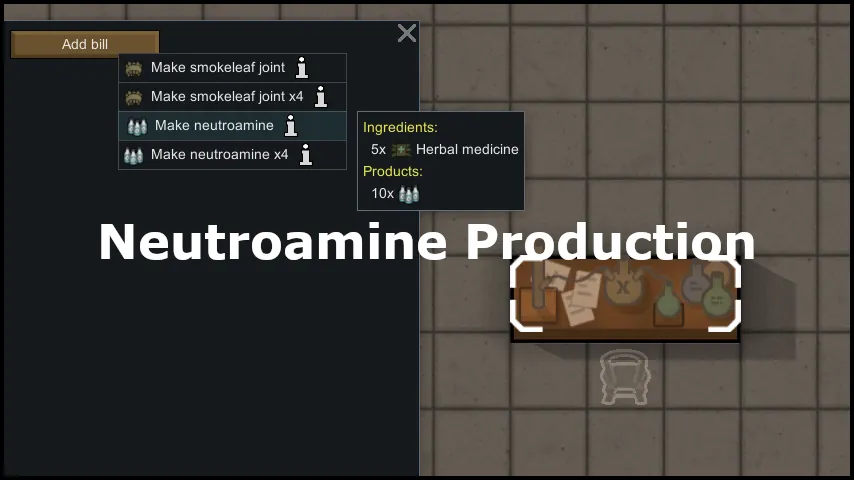 Adds a recipe to produce neutroamine from herbal medicine in the drug lab.