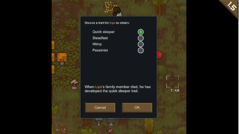 The aim of this patch is not to create a powerful pawn by choosing OP traits. I like the trait obtaining mechanism, but want them to make more sense. If you found choosing your own trait too OP, simply turn the window function off.