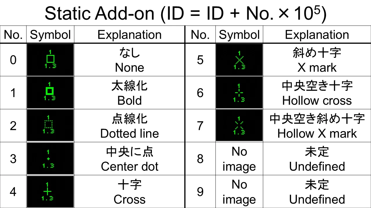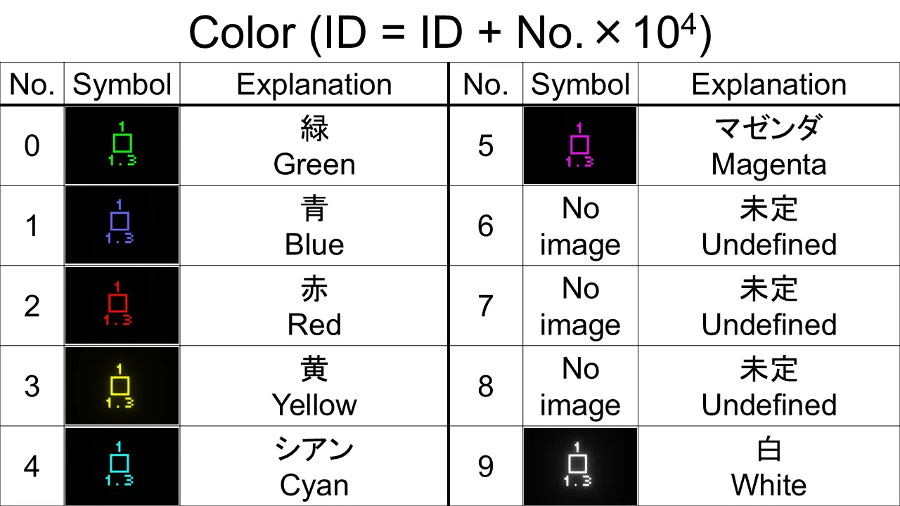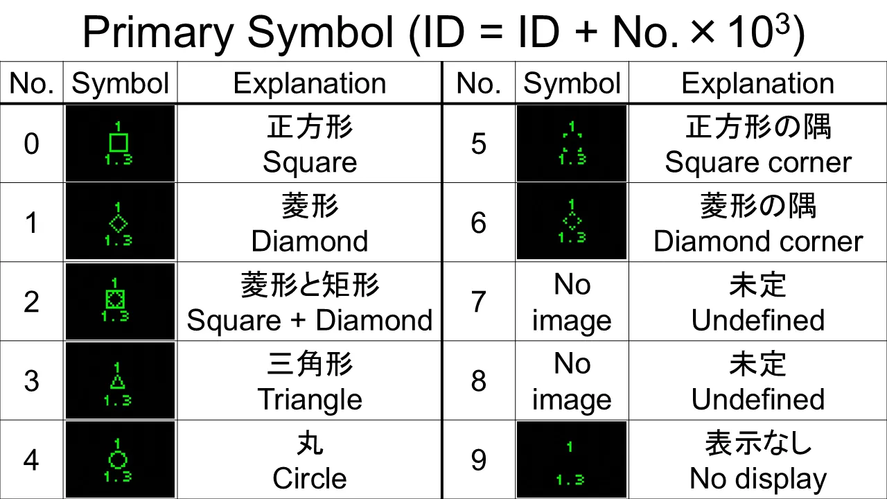 Basic symbol: ID = ID + Symbol No. * 10^3