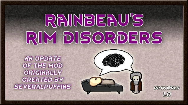 Obviously, my version of "Rim Disorders" owes a great deal to SeveralPuffins, who originally created it. I have, myself, done little with it so far beyond simply ensuring that it functions in RimWorld 1.0.