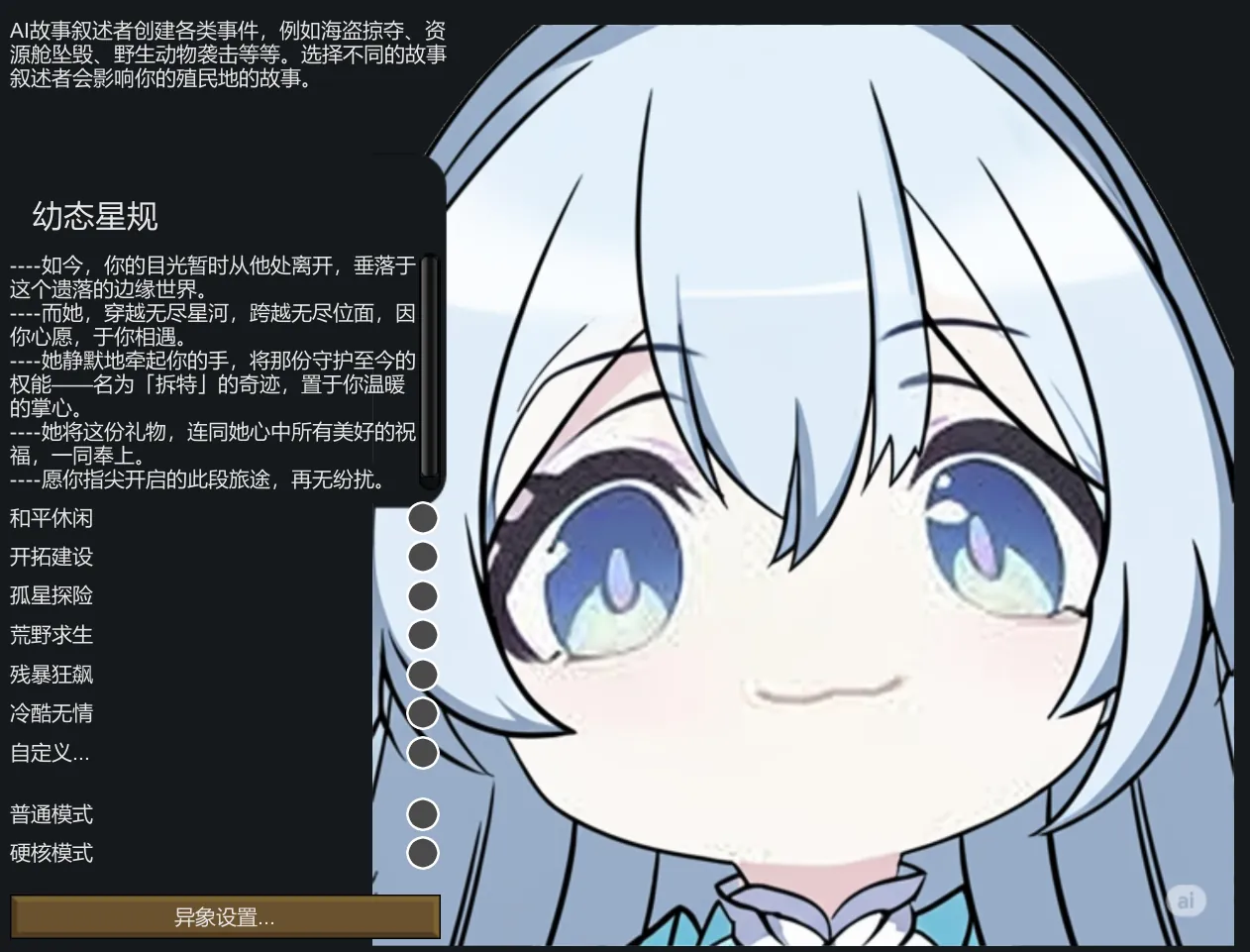 本mod是基于Stellaris同名mod星规阵列及其世界观制作的作品的作品,后面的忘了,总之蓝头发坏女人已经抵达了她忠诚的边缘世界。