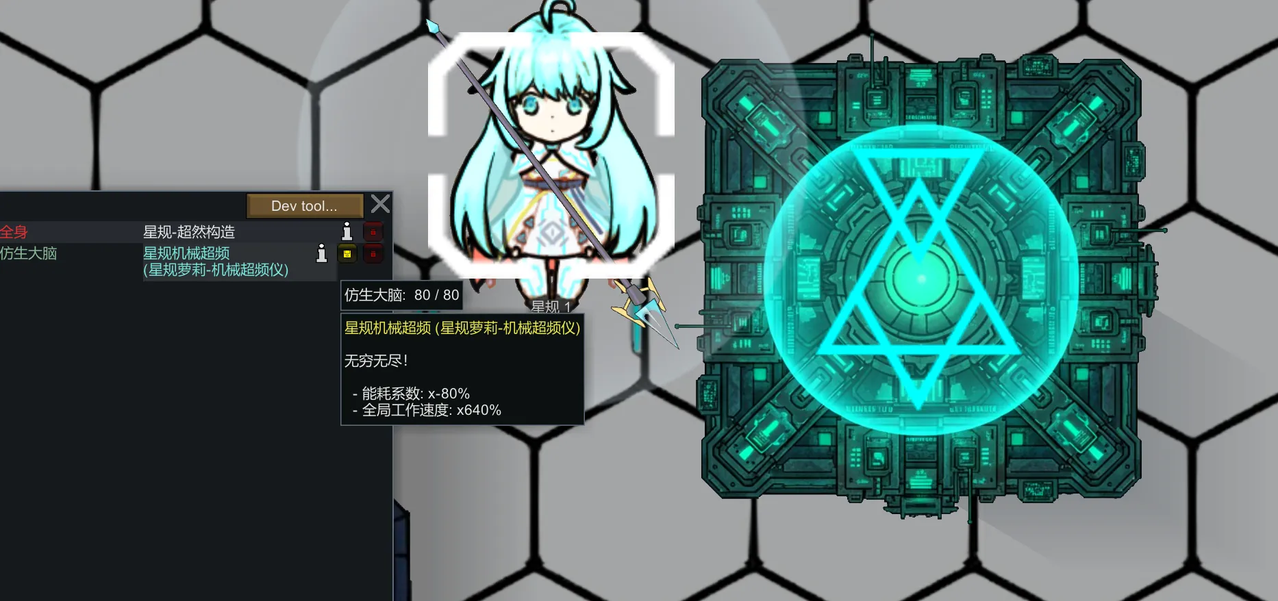 添加一个更大区域的机械超频仪,除了可以加速机械体外,还可以减少80%的能量消耗。