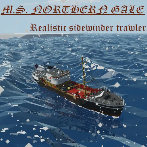 The [i]M.S. Northern Gale[/i] is an authentic recreation of a British North Atlantic sidewinder trawler from the late 1960s and early 1970s. Designed for long-range, deep-sea fishing operations, she’s built to handle anything from the frigid Arctic waters to the dry, sun-baked seas off Aridstan (Meirer). The Northern Gale delivers an authentic and immersive fishing experience to your Stormworks world.