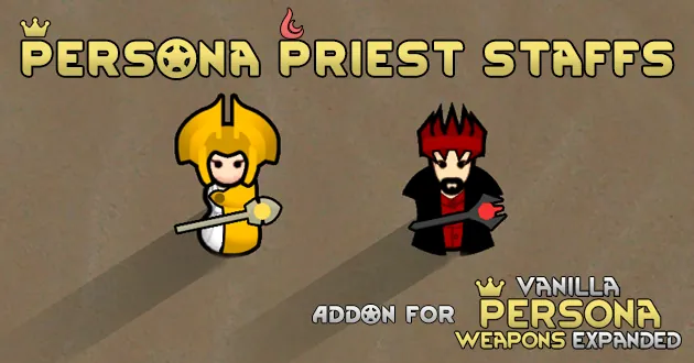 Two new weapon categories have been added to the Vanilla Persona Weapons Expanded mod: the Priest Staff. It has the same properties as the Persona Eltex Staff, but with a recolored skin giving it a more evil (dark) or good (light) appearance. It also offers a variety of bonuses, depending on the type of Priest Staff, such as conversion aid.